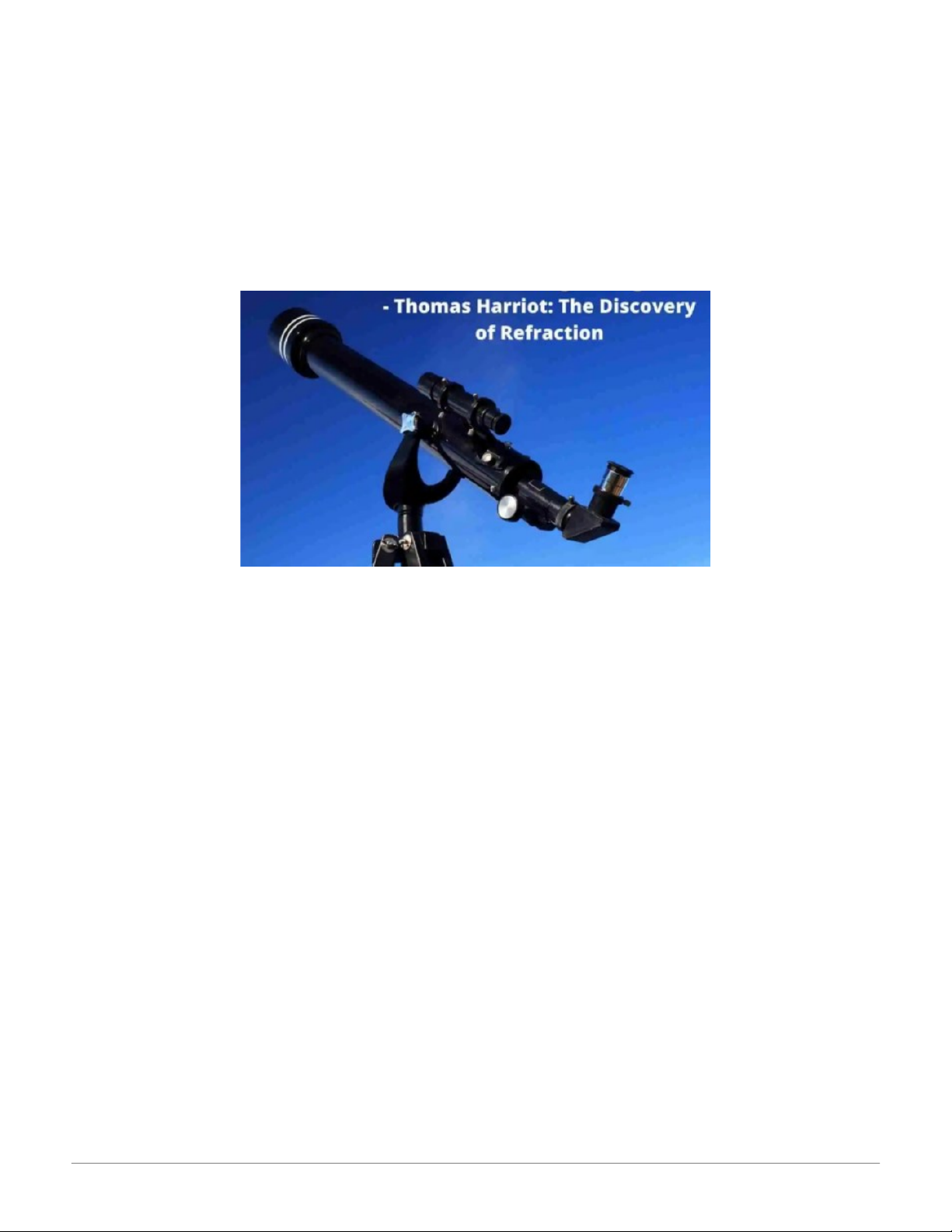 Thomas Harriot: The Discovery of Refraction A