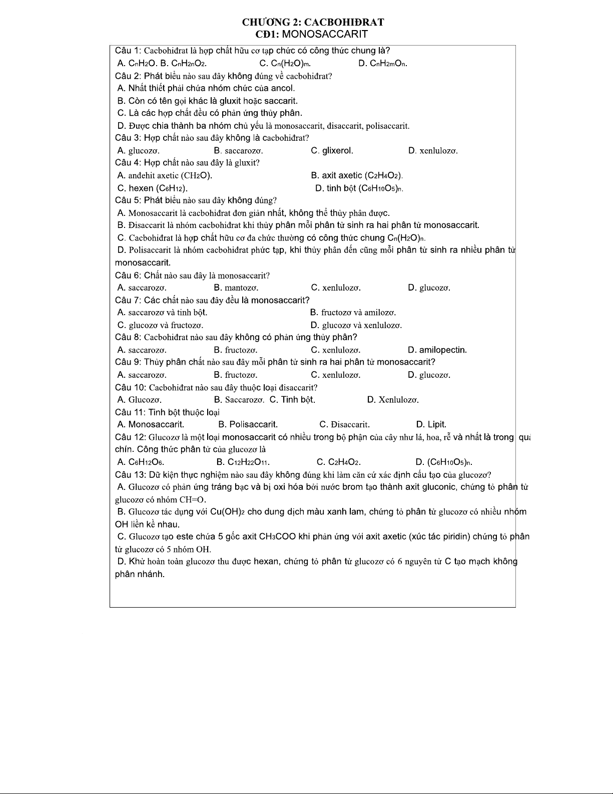 H12 - Chương 2: Cacbohidrat và Monosaccarit trong Hóa học