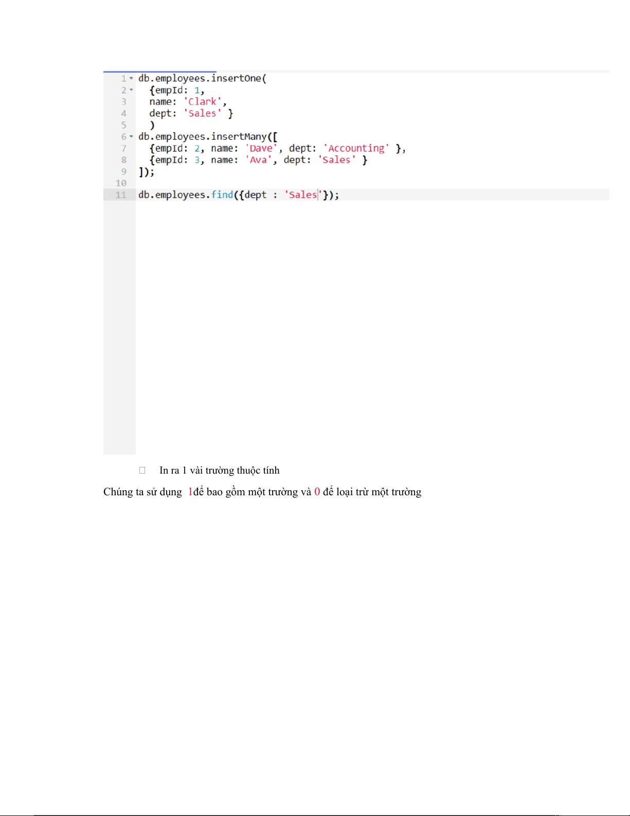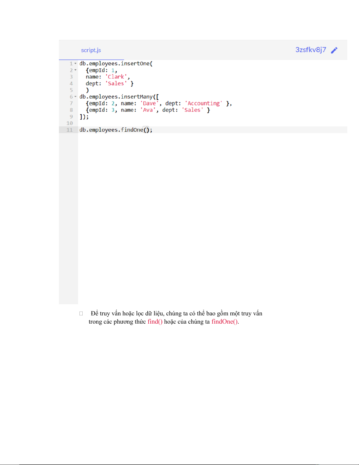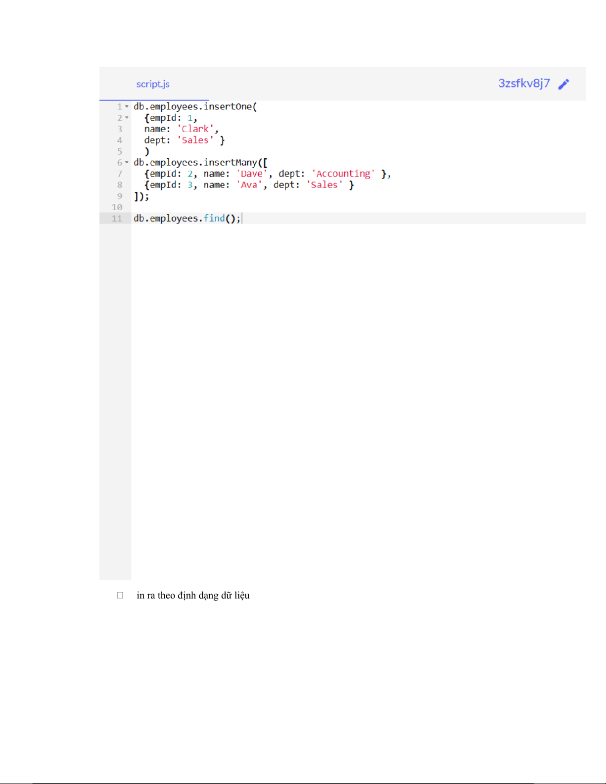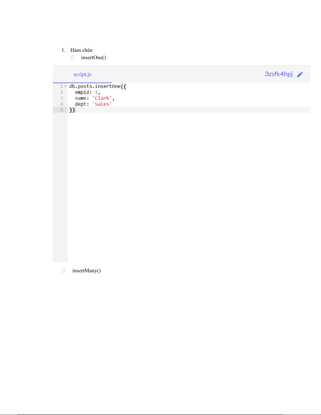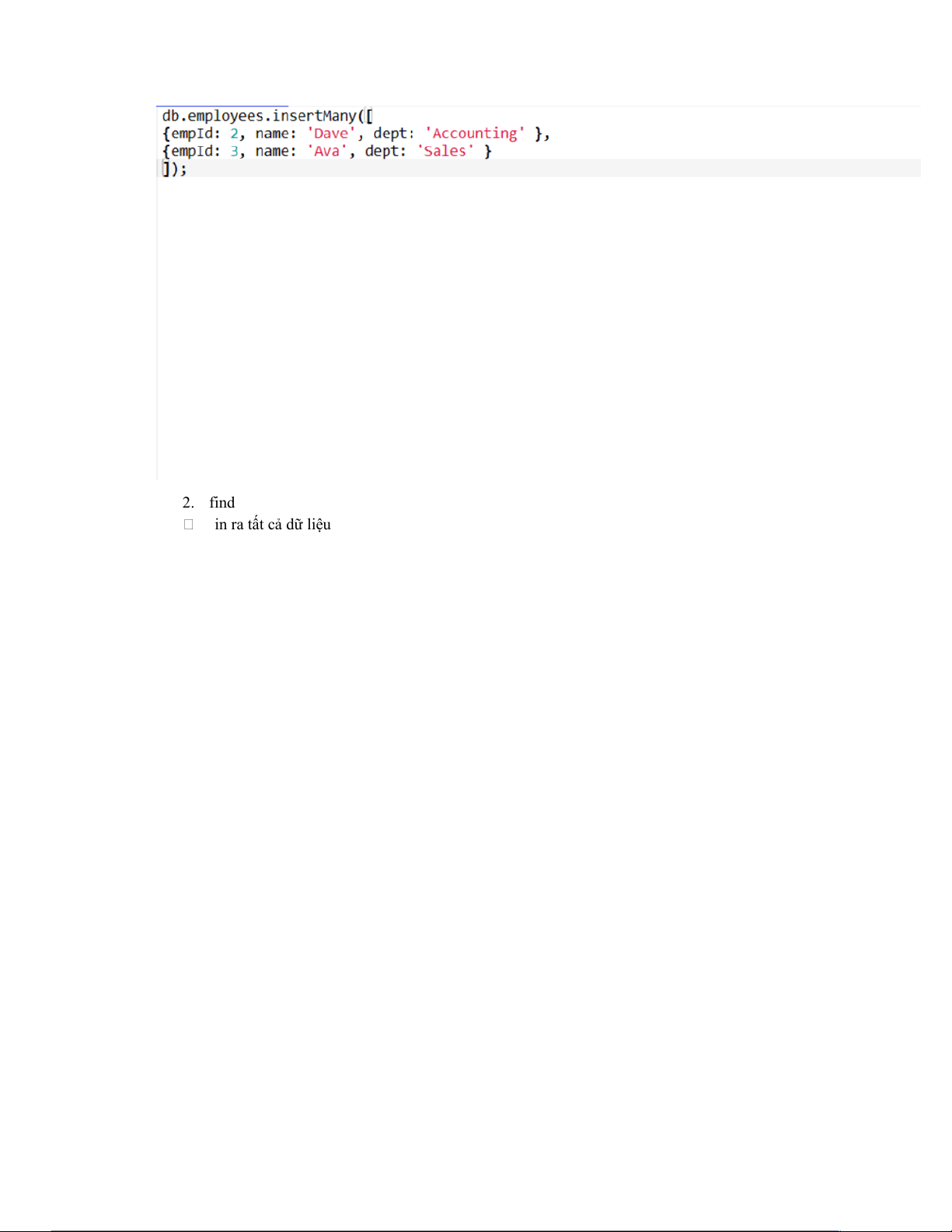 1. Hàm chèn insertOne() insertMany() 2. find in ra tất cả dữ liệu