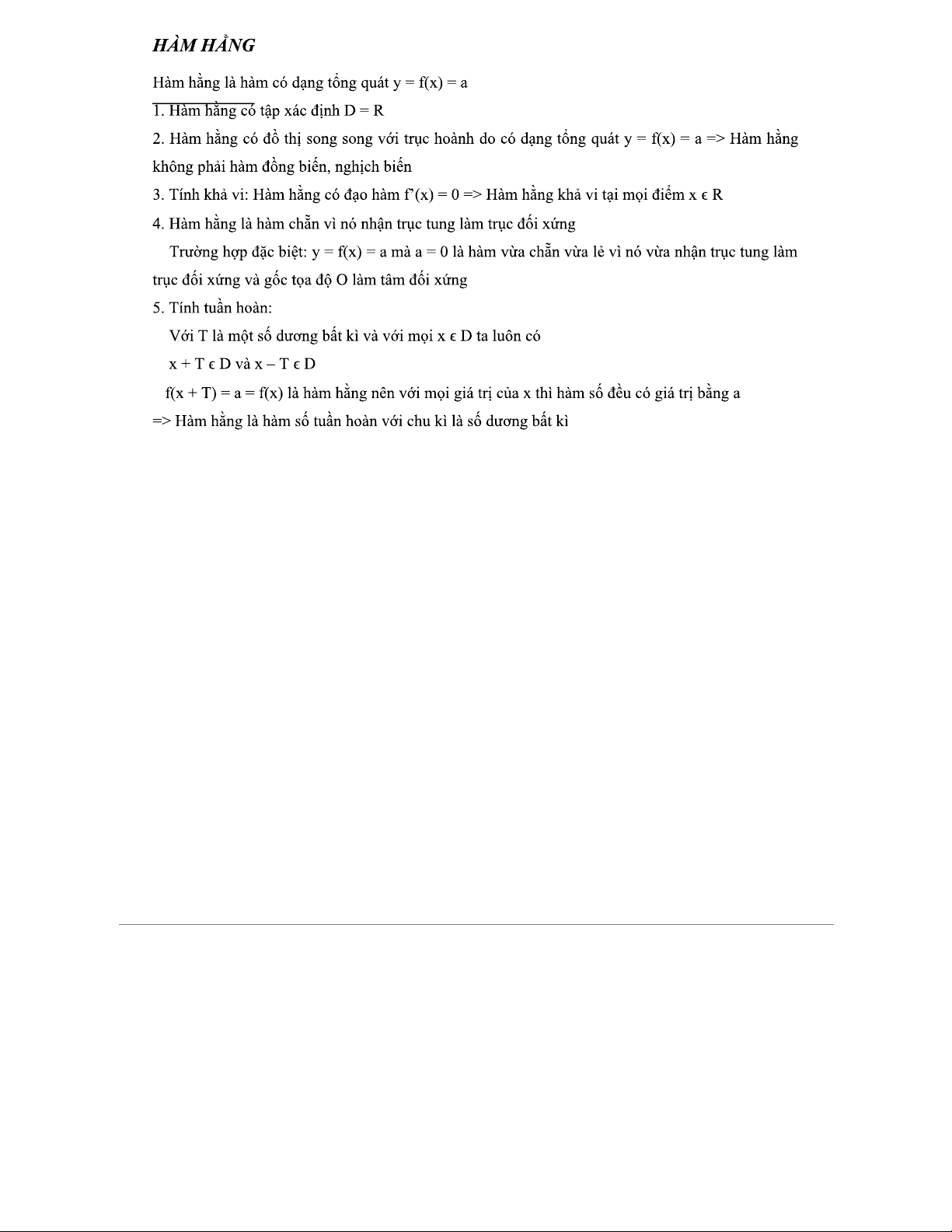 HÀM HẰNG - Tóm tắt Toán Cao Cấp (Chương 1)