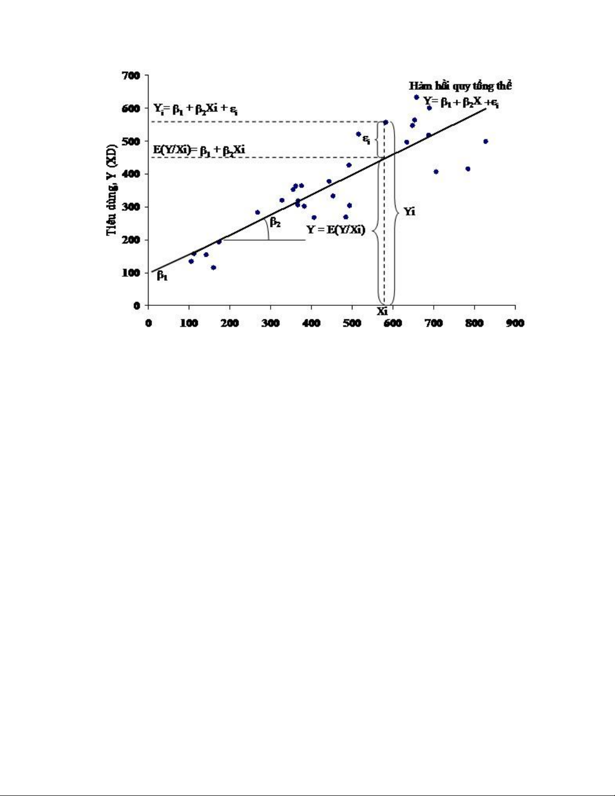 Hình 3.2. Hàm hồi quy tổng thể tuyến tính