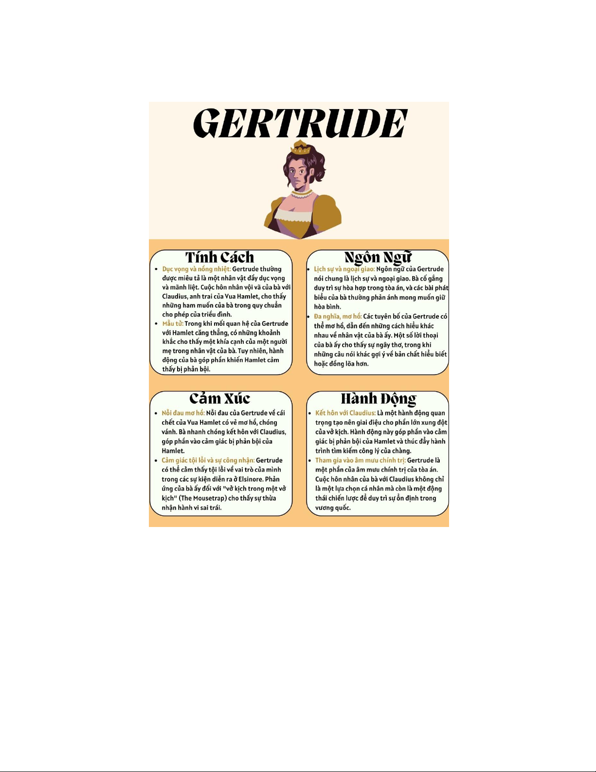 chàng giữ lại ý chí của một con người ngay thẳng. Hoàng hậu Gertrude là một