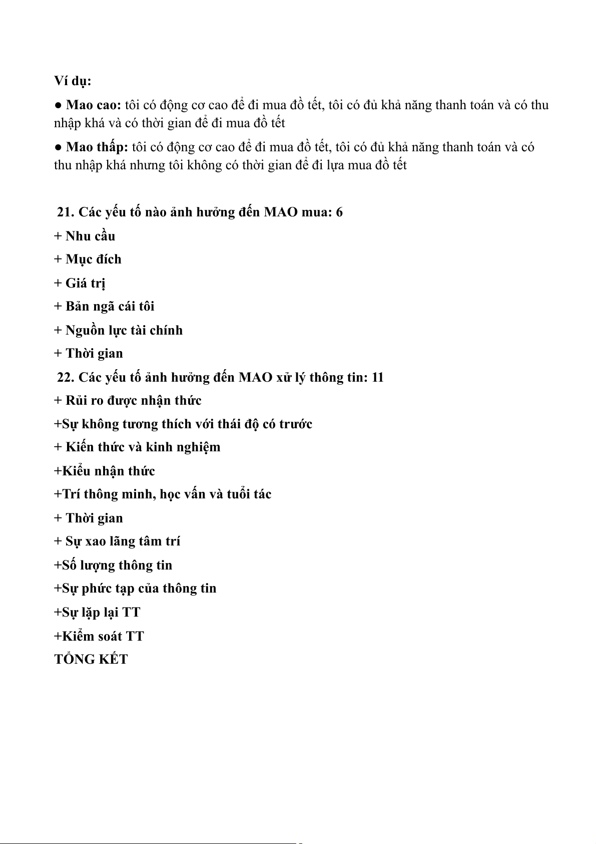 ● Mao cao: tôi có động cơ cao để đi mua đồ tết, tôi có đủ khả năng thanh toán và có thu
