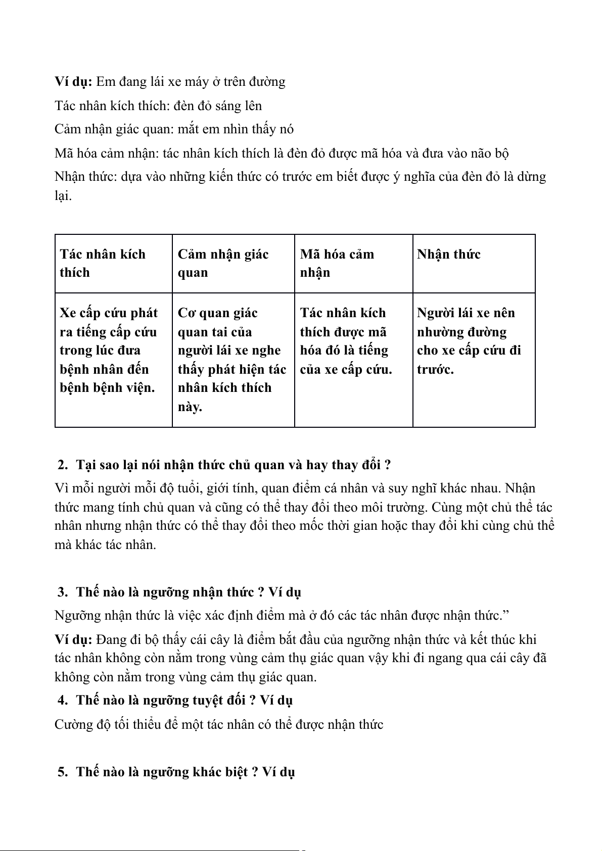 4. Thế nào là ngưỡng tuyệt đối ? Ví dụ