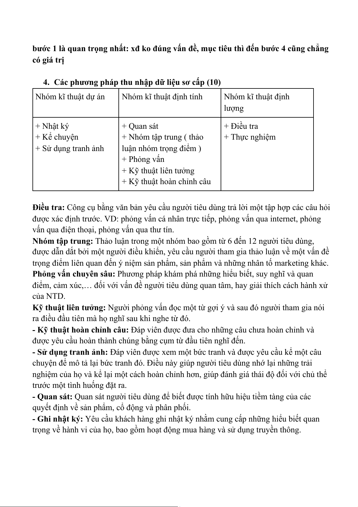 4. Các phương pháp thu nhập dữ liệu sơ cấp (10) Nhóm kĩ thuật dự án
