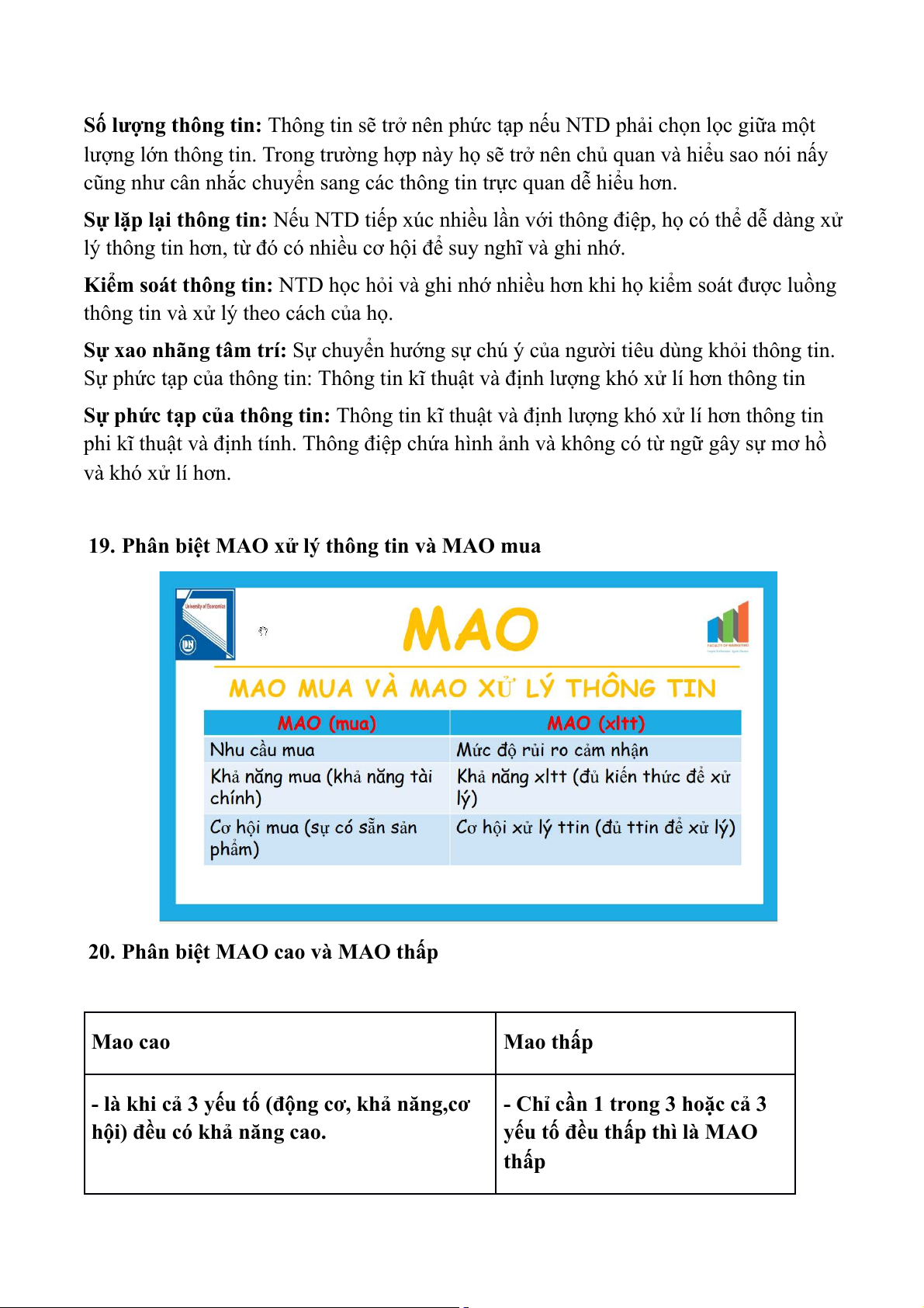 19. Phân biệt MAO xử lý thông tin và MAO mua
