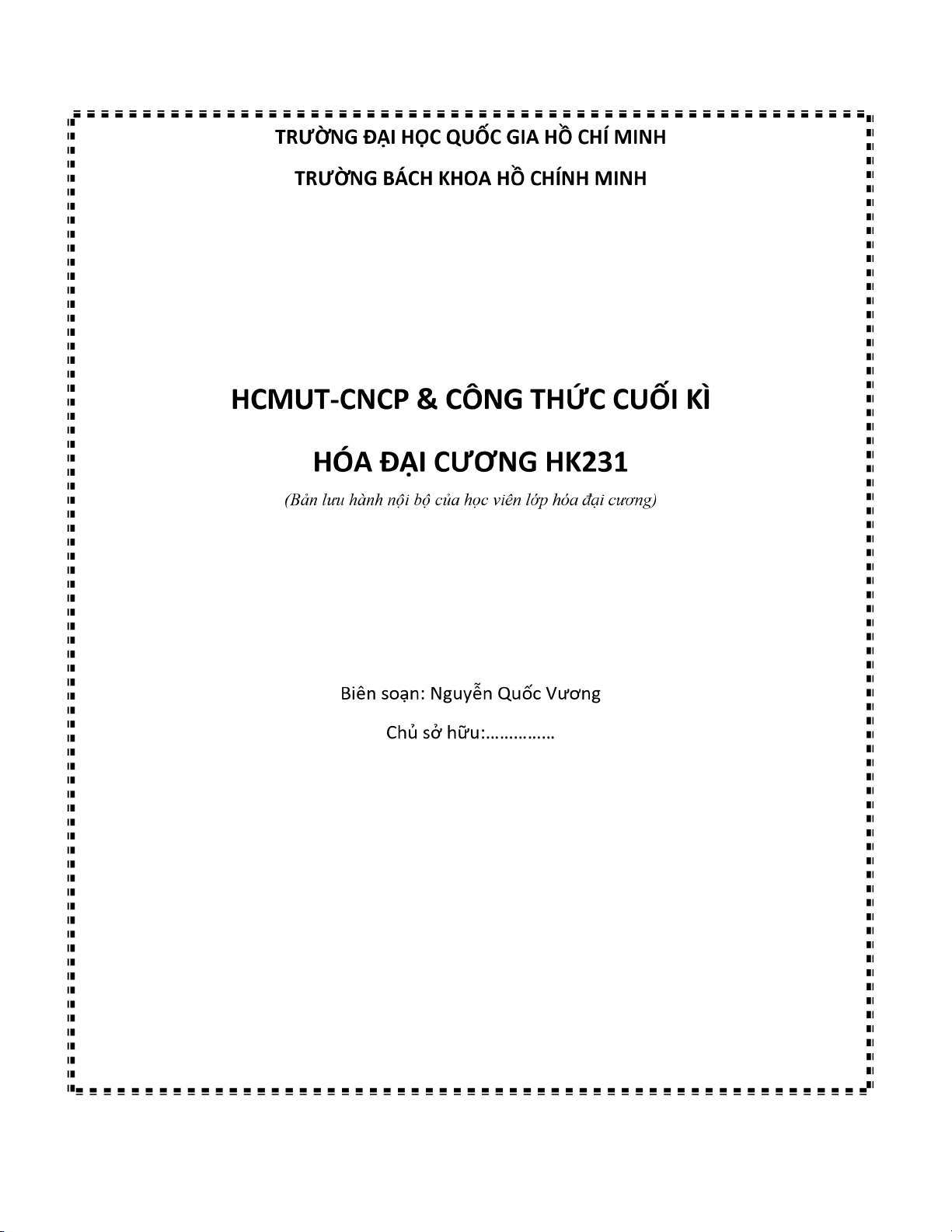 HCMUT CNCP HÓA ĐẠI CƯƠNG NGUYỄN QUỐC VƯƠNG