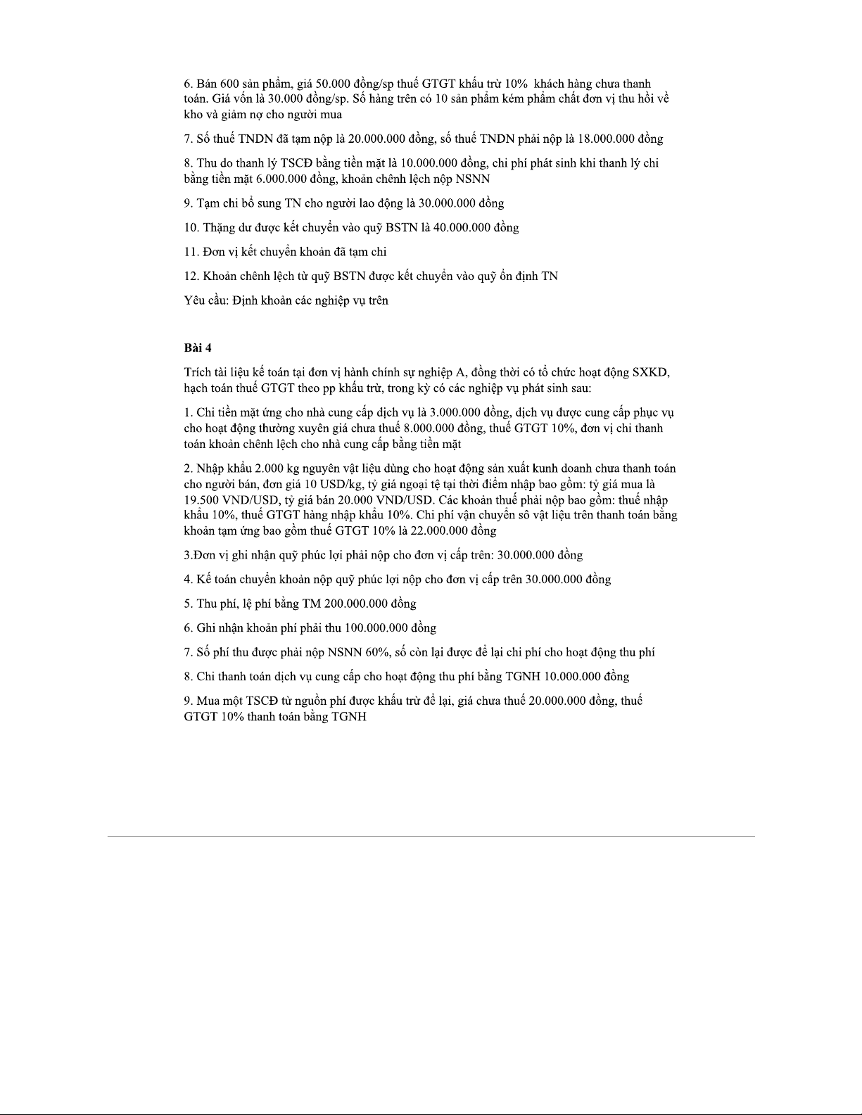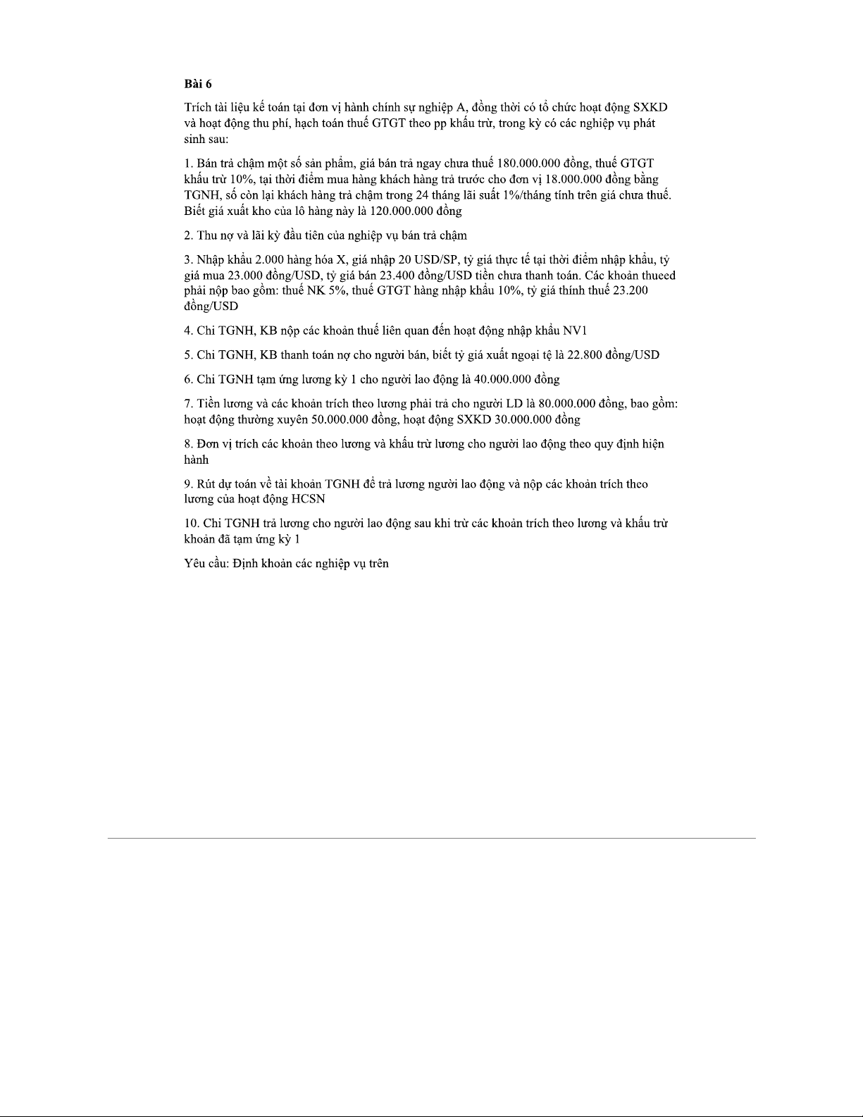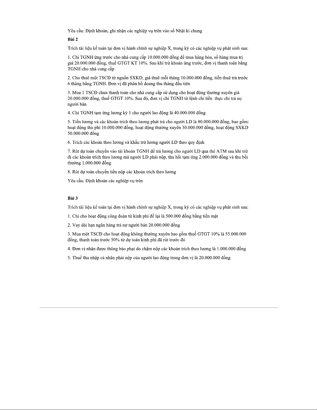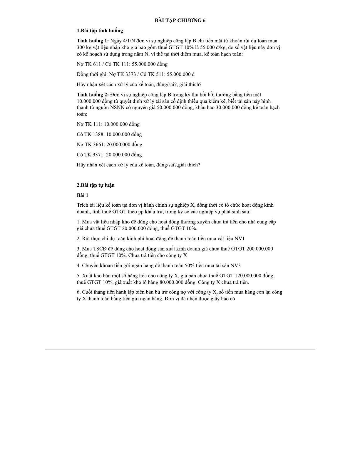 HCSN BÀI TẬP CHƯƠNG 6 - Tình Huống và Định Khoản Kế Toán Nghề Nghiệp