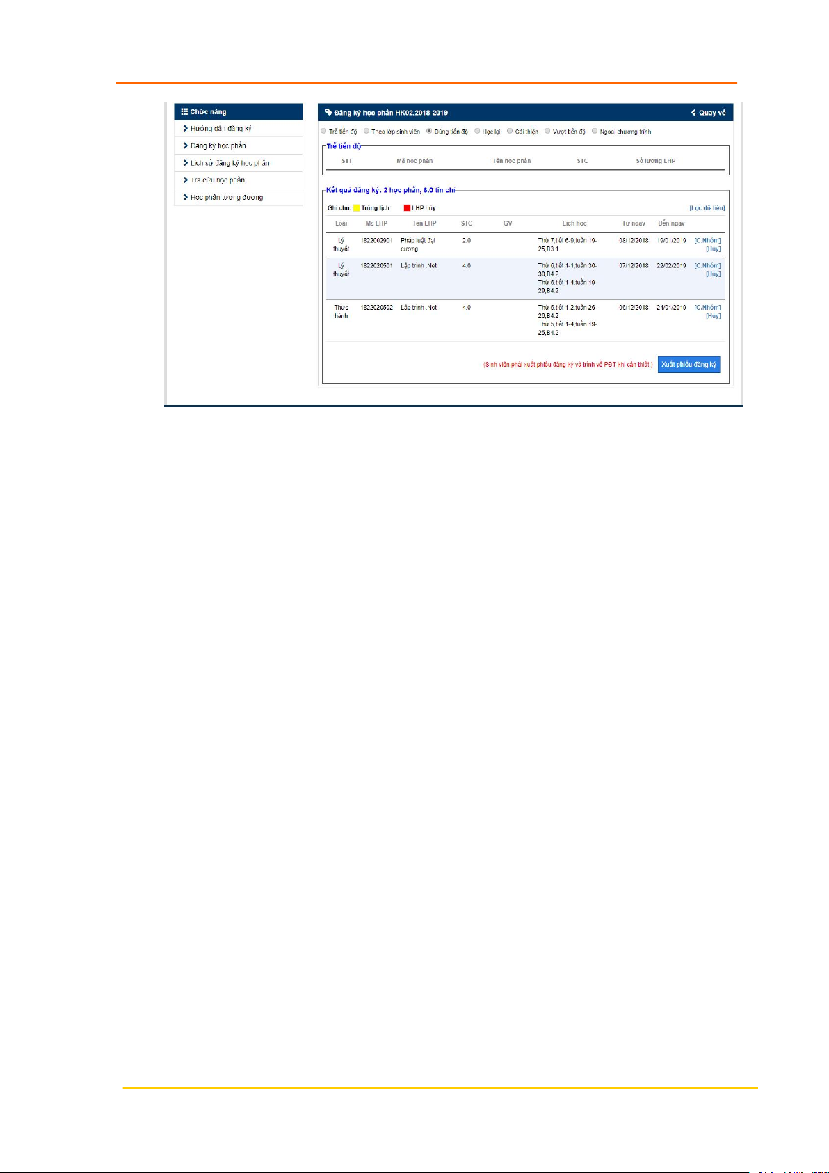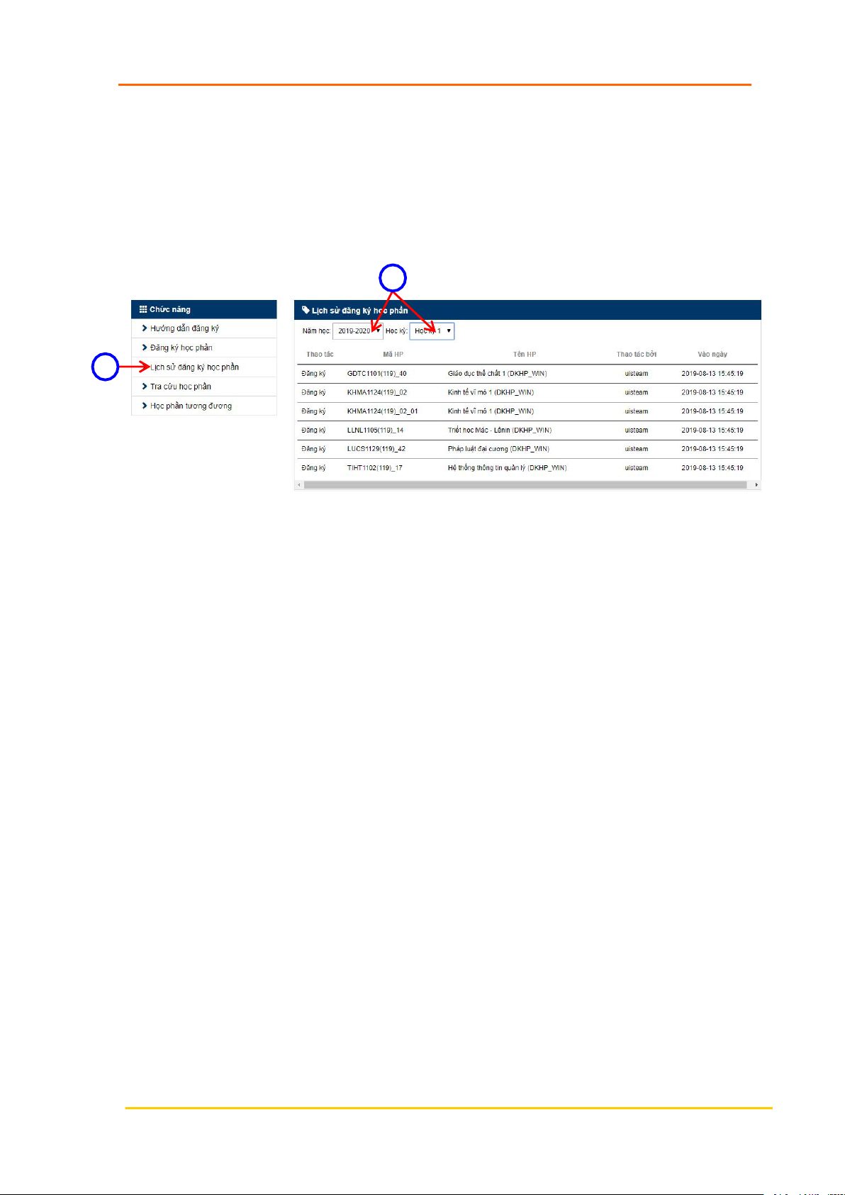 Chức năng cho phép sinh viên xem lại quá trình đăng ký học phần của mình theo các học kỳ 2 1