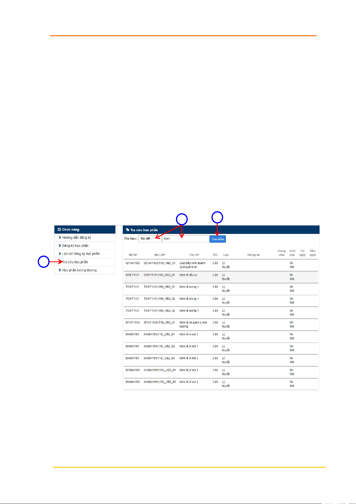 Từ thông tin của lớp học phần, sinh viên có thể chủ động chọn lớp để đăng ký. 2 3 1