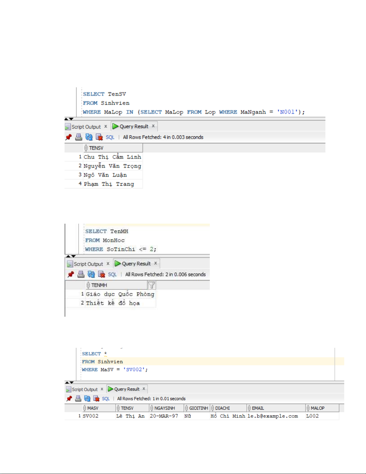 Lấy thông tin của sinh viên có mã 'SV002': 19