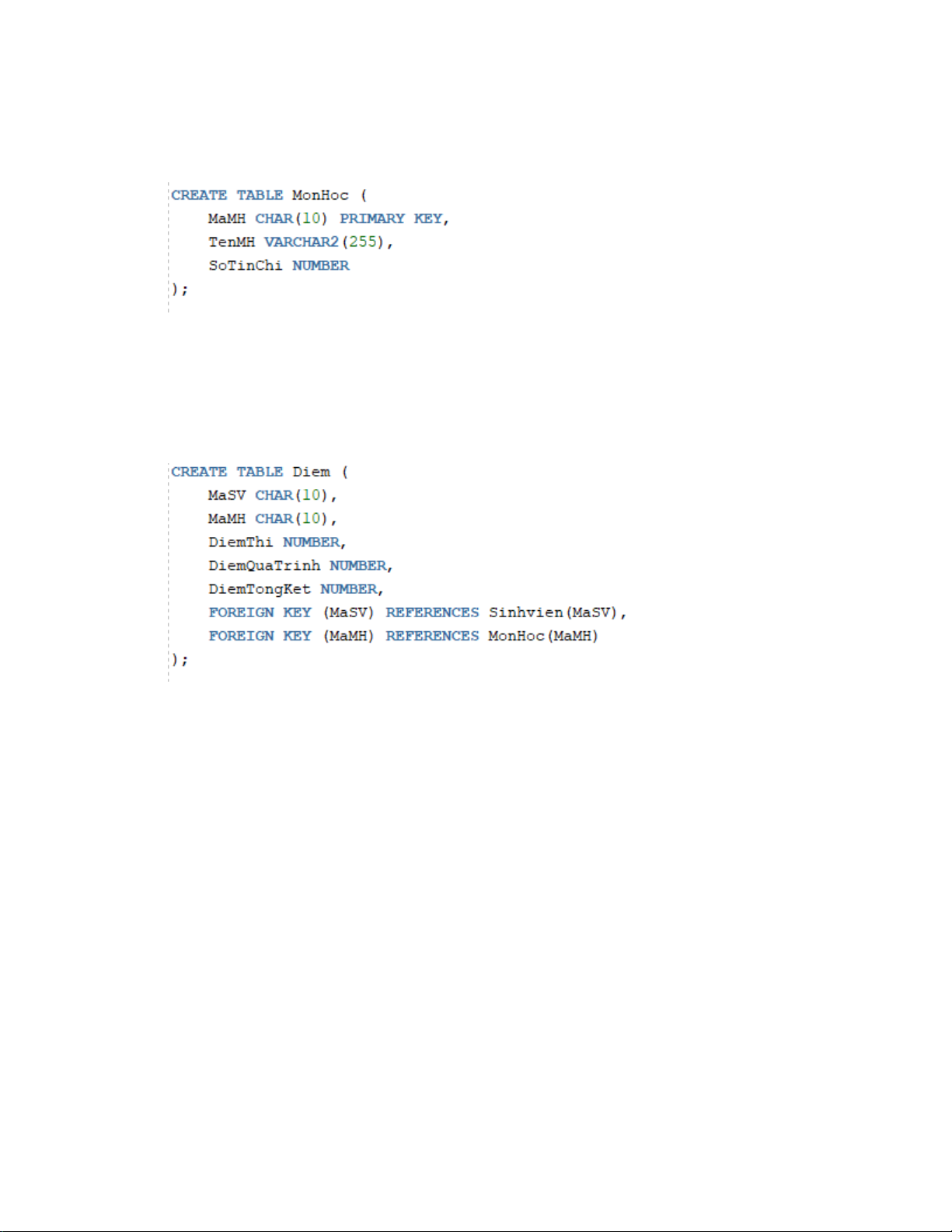 Diem(@MaSV, @MaMH, DiemThi, DiemQuaTrinh, DiemTongKet)