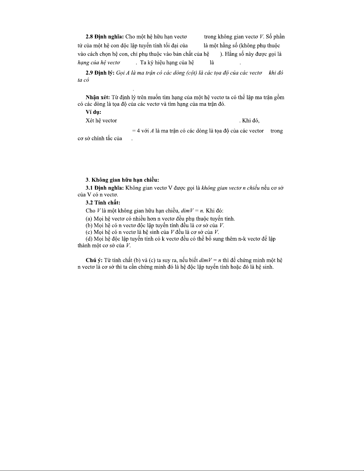Hệ sinh, cơ sở, số chiều và hạng của hệ vectơ (CĐ 101)