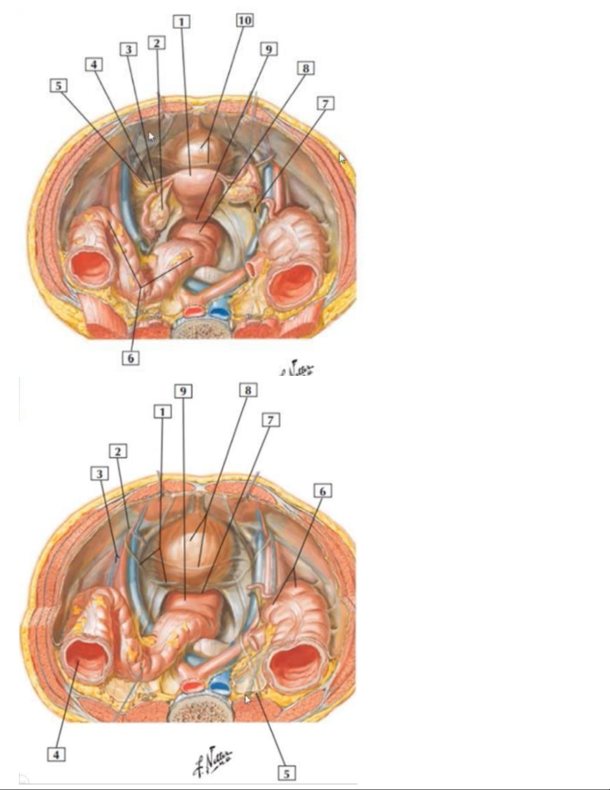 Ố ng d ẫ n tinh cũng tương t ự NỮ 1. Đáy tử cung lOMoAR cPSD| 22014077 2. Buồng trứng 3. Vòi tử cung 4. Dây chằng tròn của tử cung 5. DC rộng (DC tử cung trên) 6. Kết tràng Xích-ma 7. Dây chằng treo buồng trứng 8. Trực tràng 9. Cổ tử cung 10. Bàng quang và nếp bàng quang ngang NAM 1. Ống dẫn tinh 2. Lỗ bẹn sâu 3. Các mạch máu tinh hoàn 4. Kết tràng xuống 5. Niệu quản 6. Manh tràng 7. Nhánh sau bàng quang