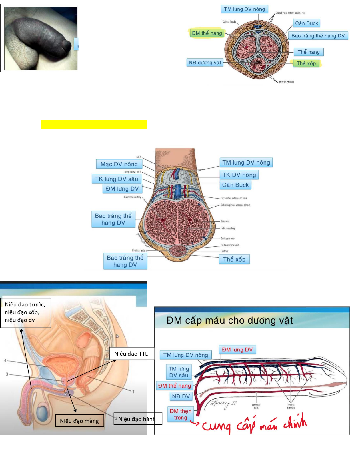 + Vật hang (2): xếp song song, nằm ở lưng dương vật. Vỏ bọc dv từ nông vào sâu: da → tổ