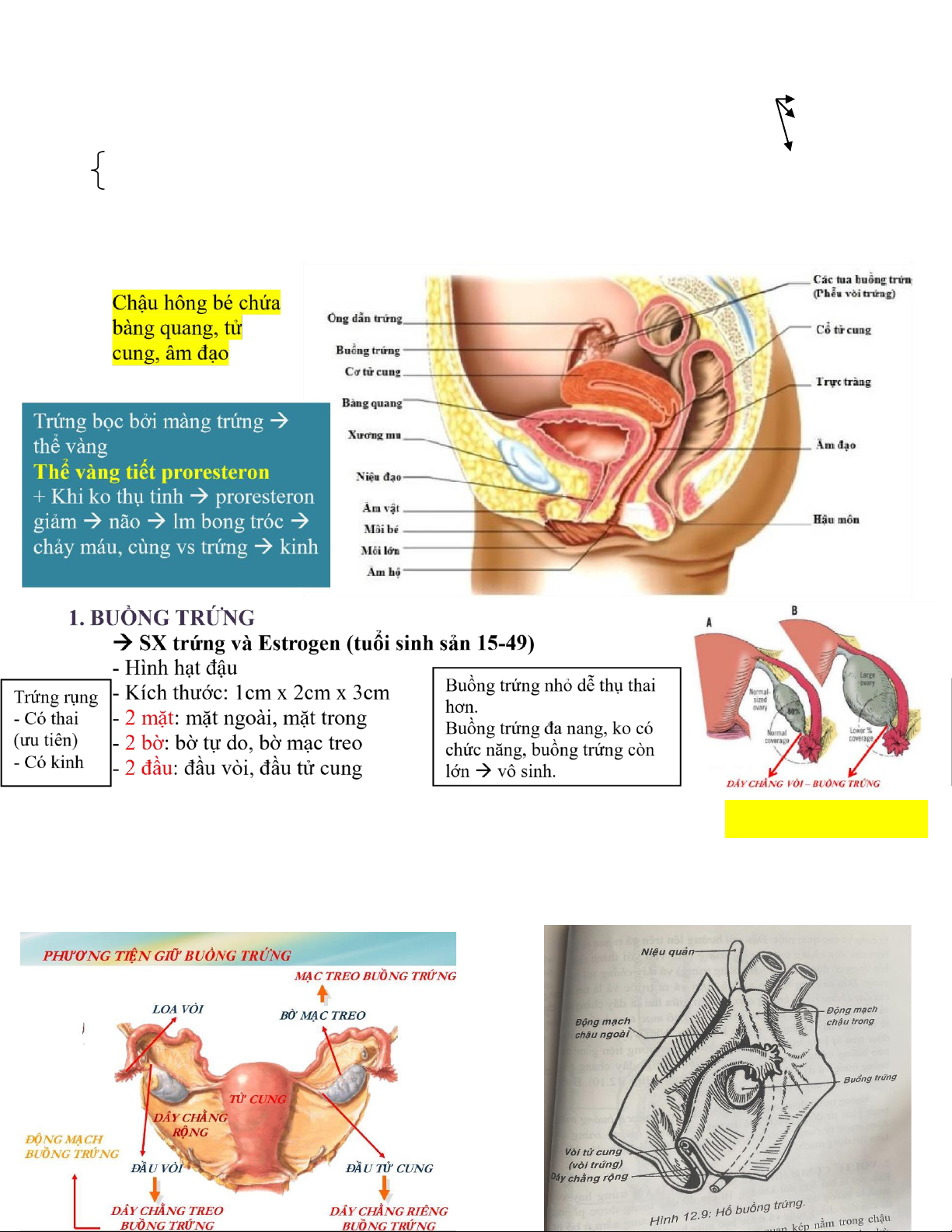 - Buồng trứng được treo lơ lửng trong chậu hông bởi: mạc treo buồng trứng, dây