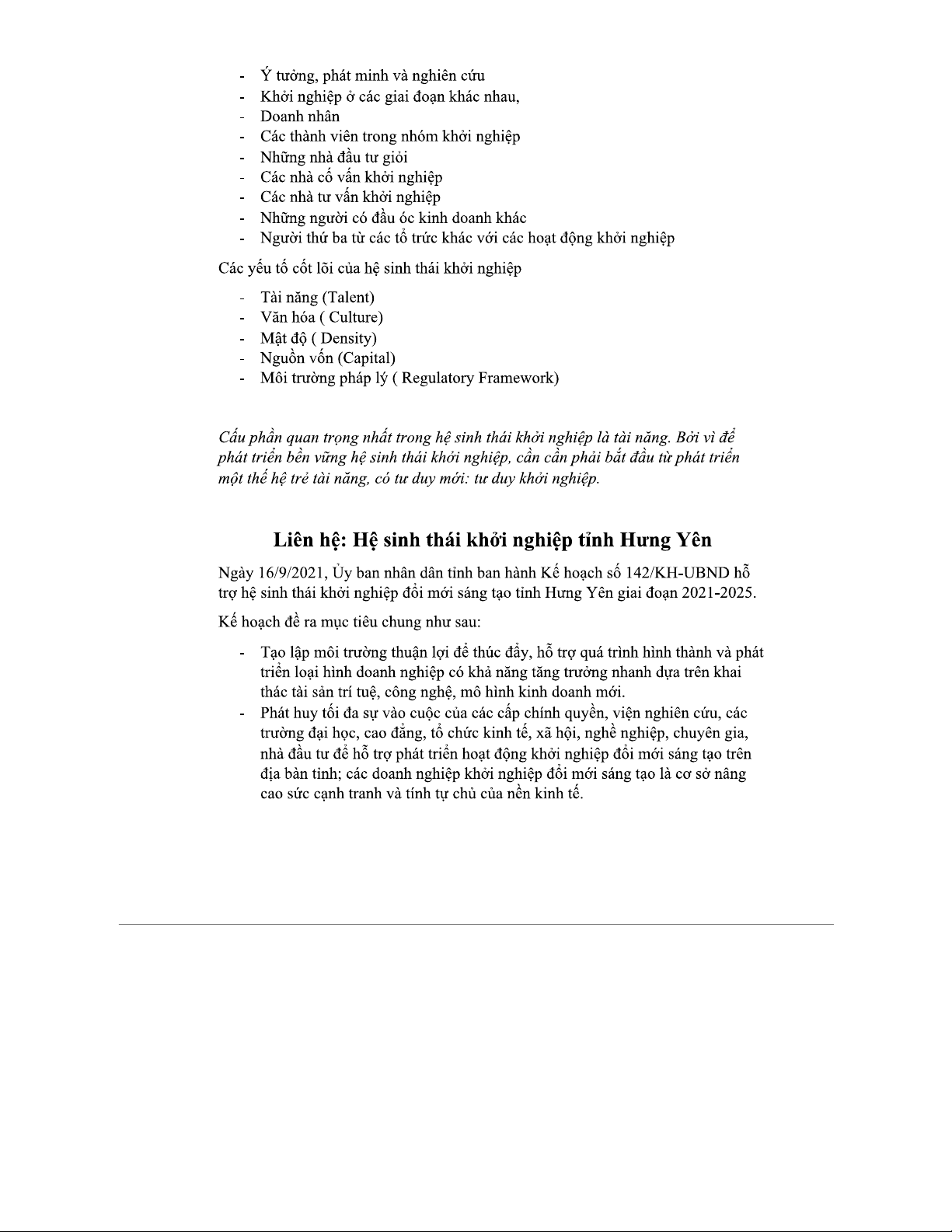 Hệ sinh thái khởi nghiệp tại tỉnh Hưng Yên: Tài liệu hướng dẫn 2021-2025