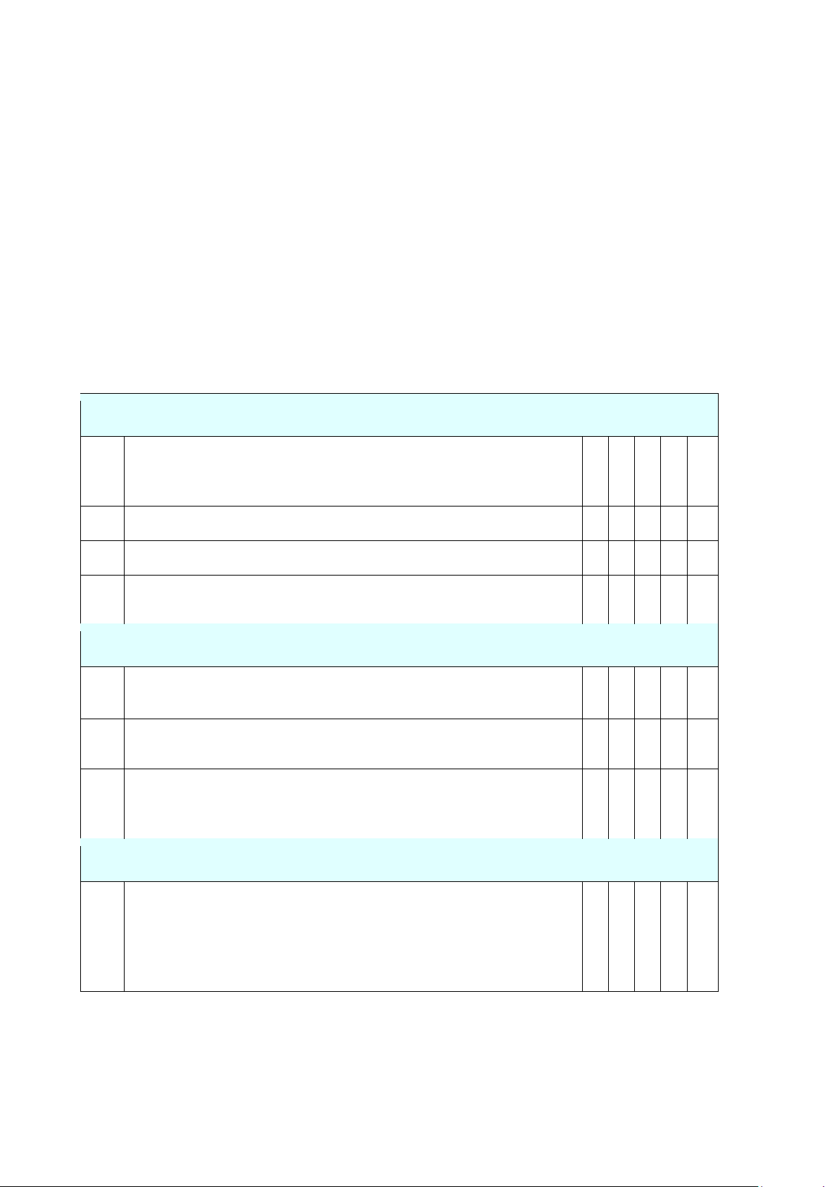 Rất kém (1); Kém(2); Đạt(3); Giỏi(4); Xuất sắc(5)