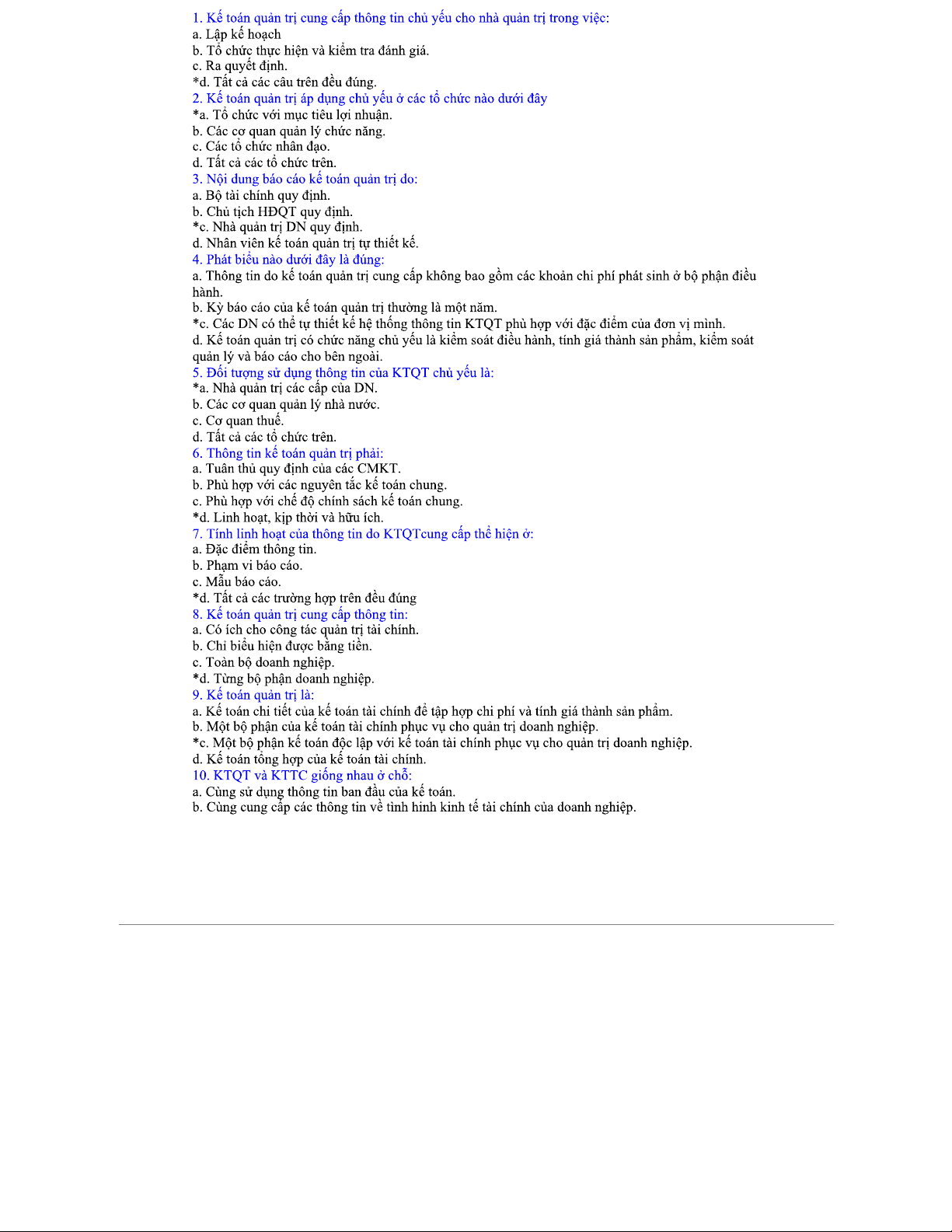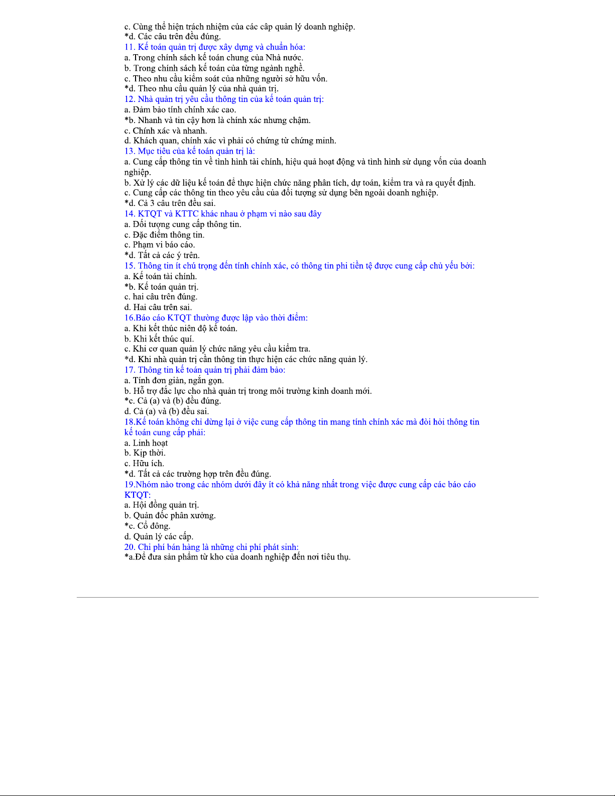 Hệ thống câu hỏi trắc nghiệm kế toán quản trị (QT 2023)
