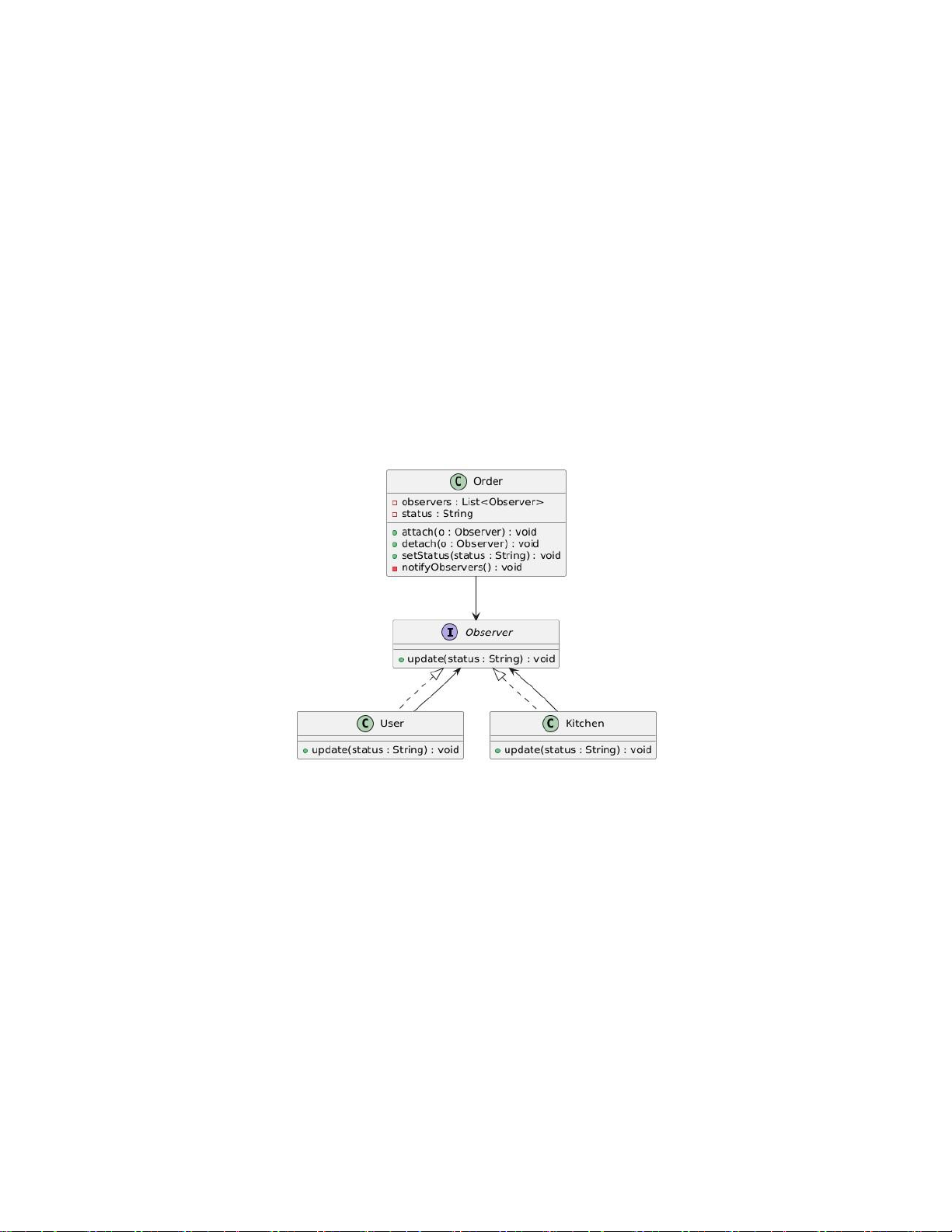 mới (decorator), vẫn giữ nguyên cấu trúc của đối tượng gốc. lOMoAR cPSD| 58794847 3. Observer Pattern
