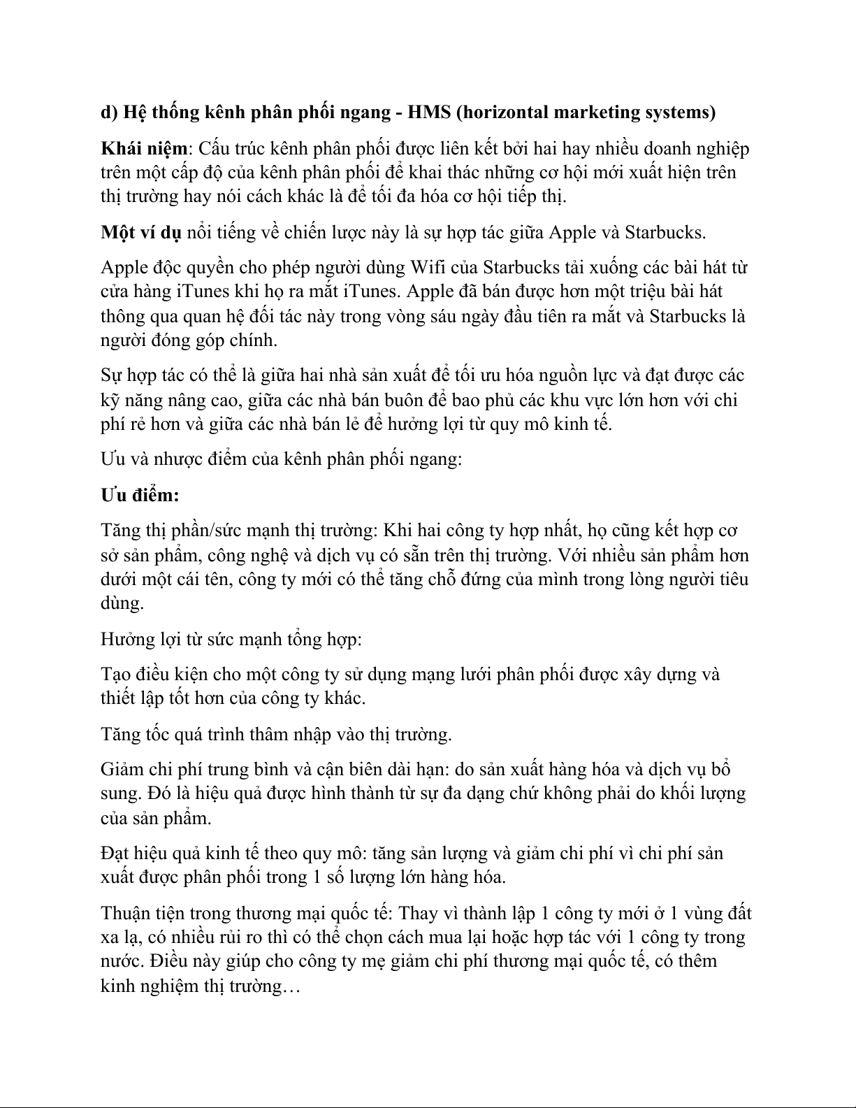 d) Hệ thống kênh phân phối ngang - HMS (horizontal marketing systems)
