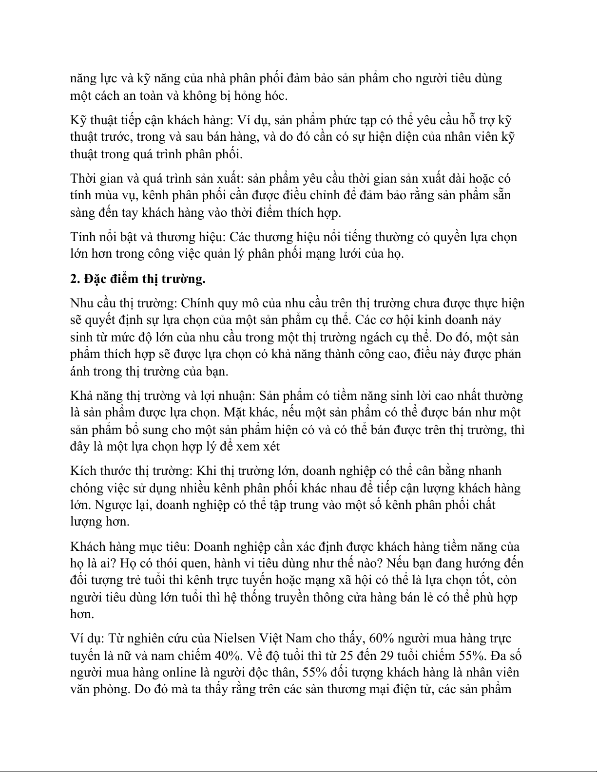 2. Đặc điểm thị trường.