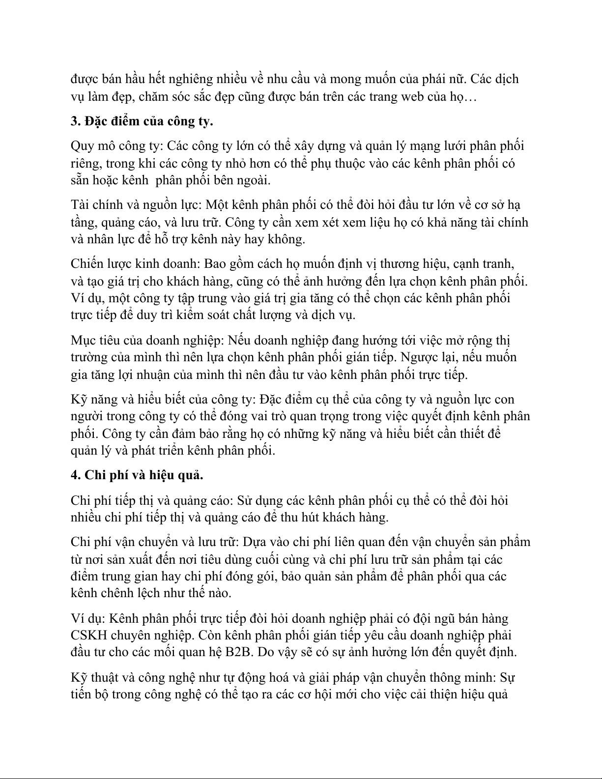 Ví dụ: Kênh phân phối trực tiếp đòi hỏi doanh nghiệp phải có đội ngũ bán hàng