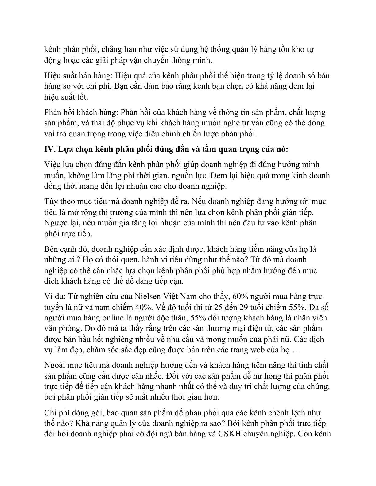 IV. Lựa chọn kênh phân phối đúng đắn và tầm quan trọng của nó: