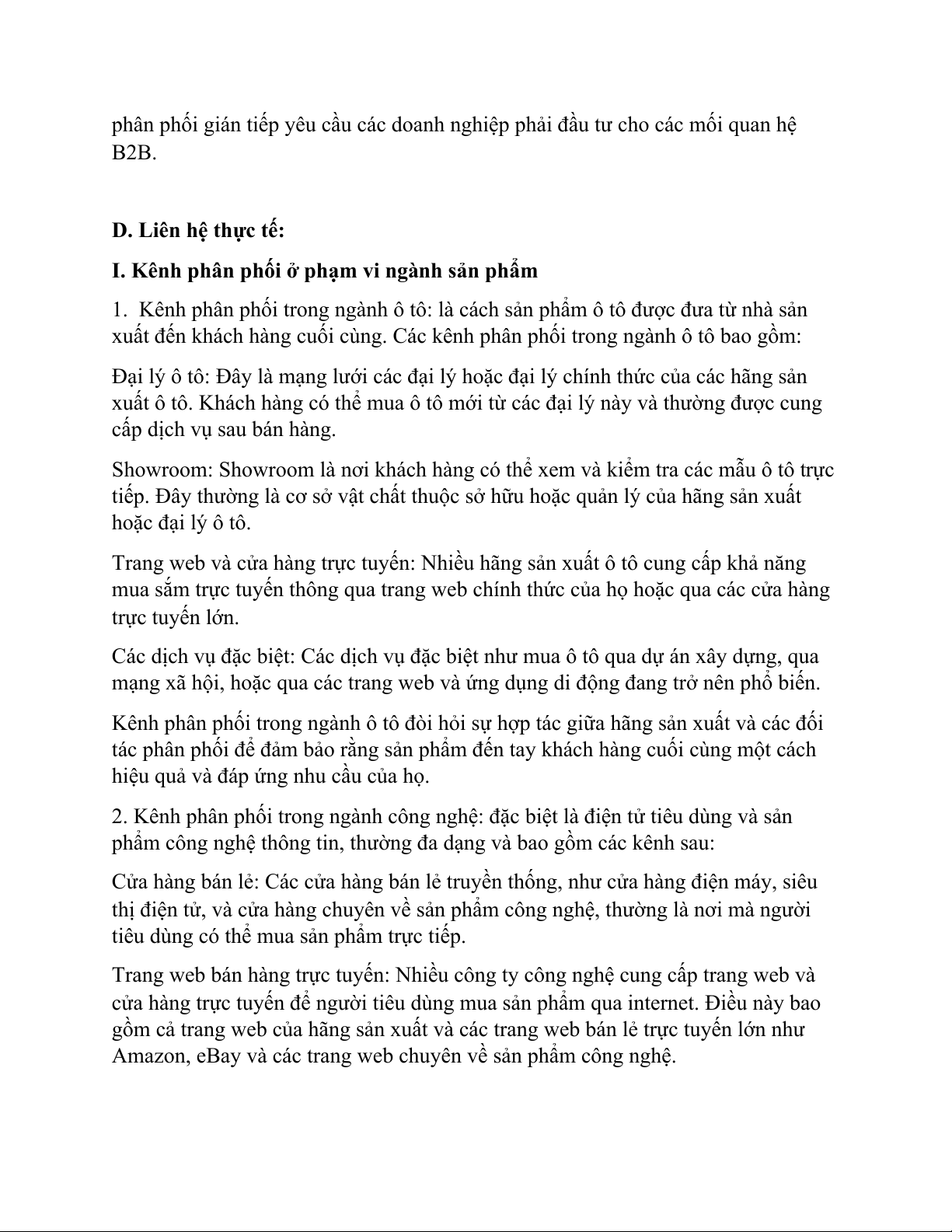 I. Kênh phân phối ở phạm vi ngành sản phẩm