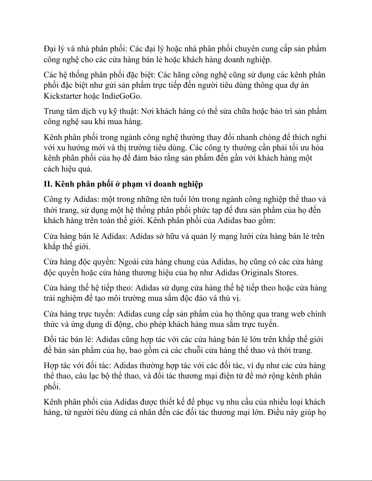 khách hàng trên toàn thế giới. Kênh phân phối của Adidas bao gồm: