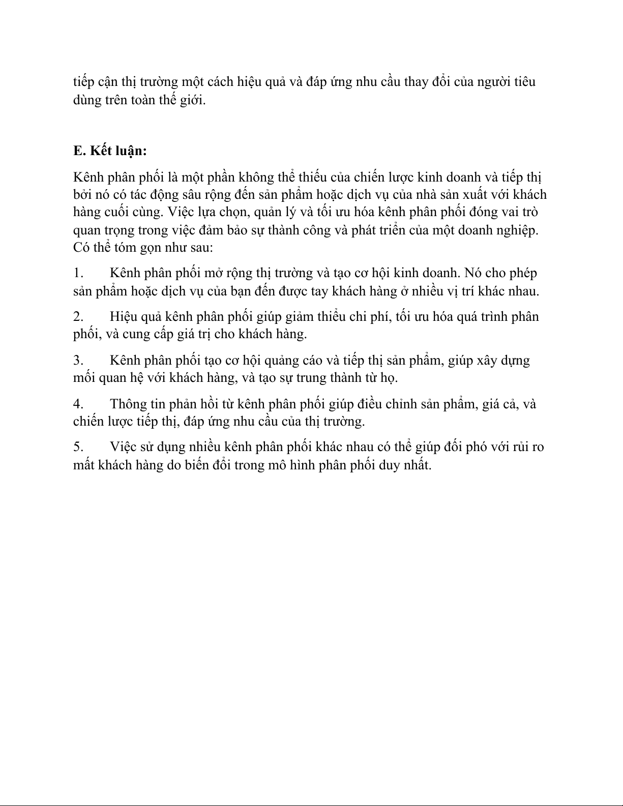dùng trên toàn thế giới. E. Kết luận: