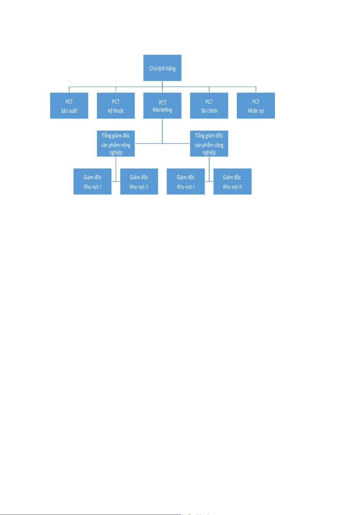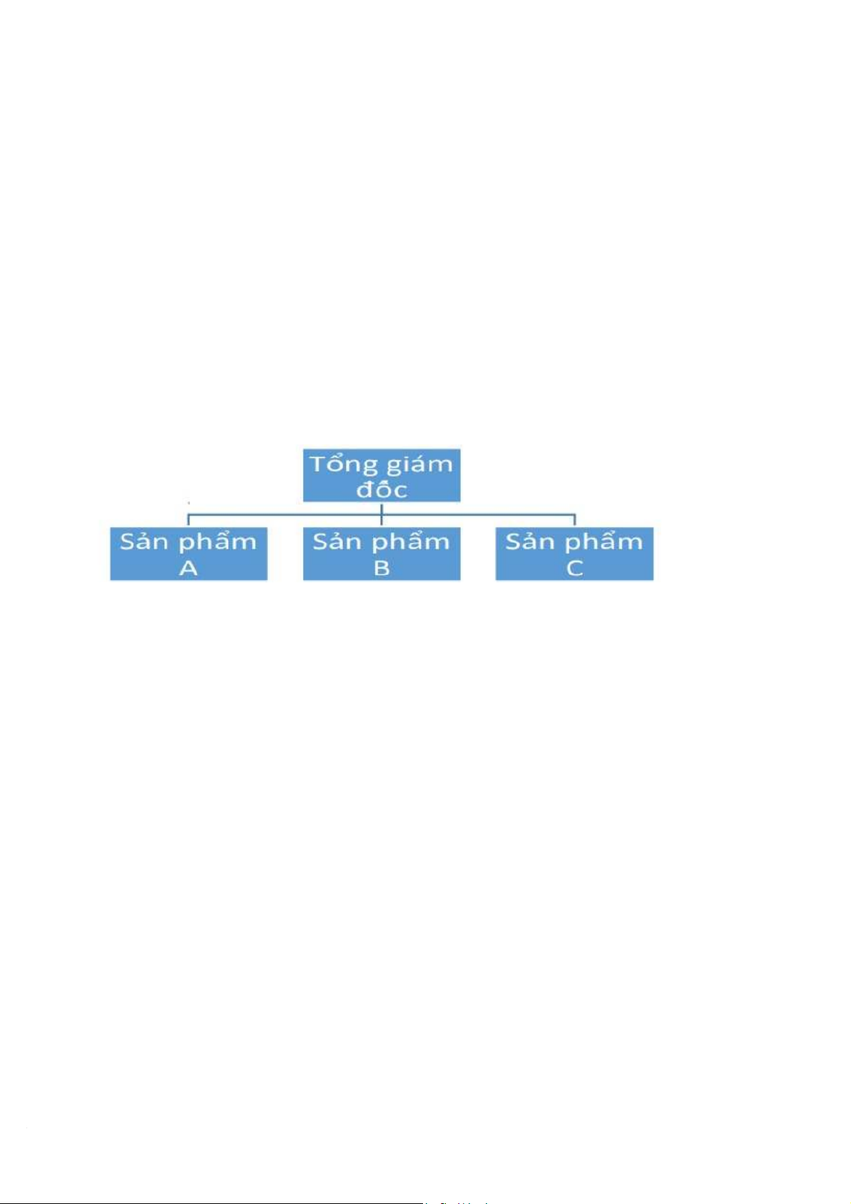 Có thể lấy ví dụ về mô hình cấu trúc tổ chức theo sản phẩm của doanh nghiệp như sau: