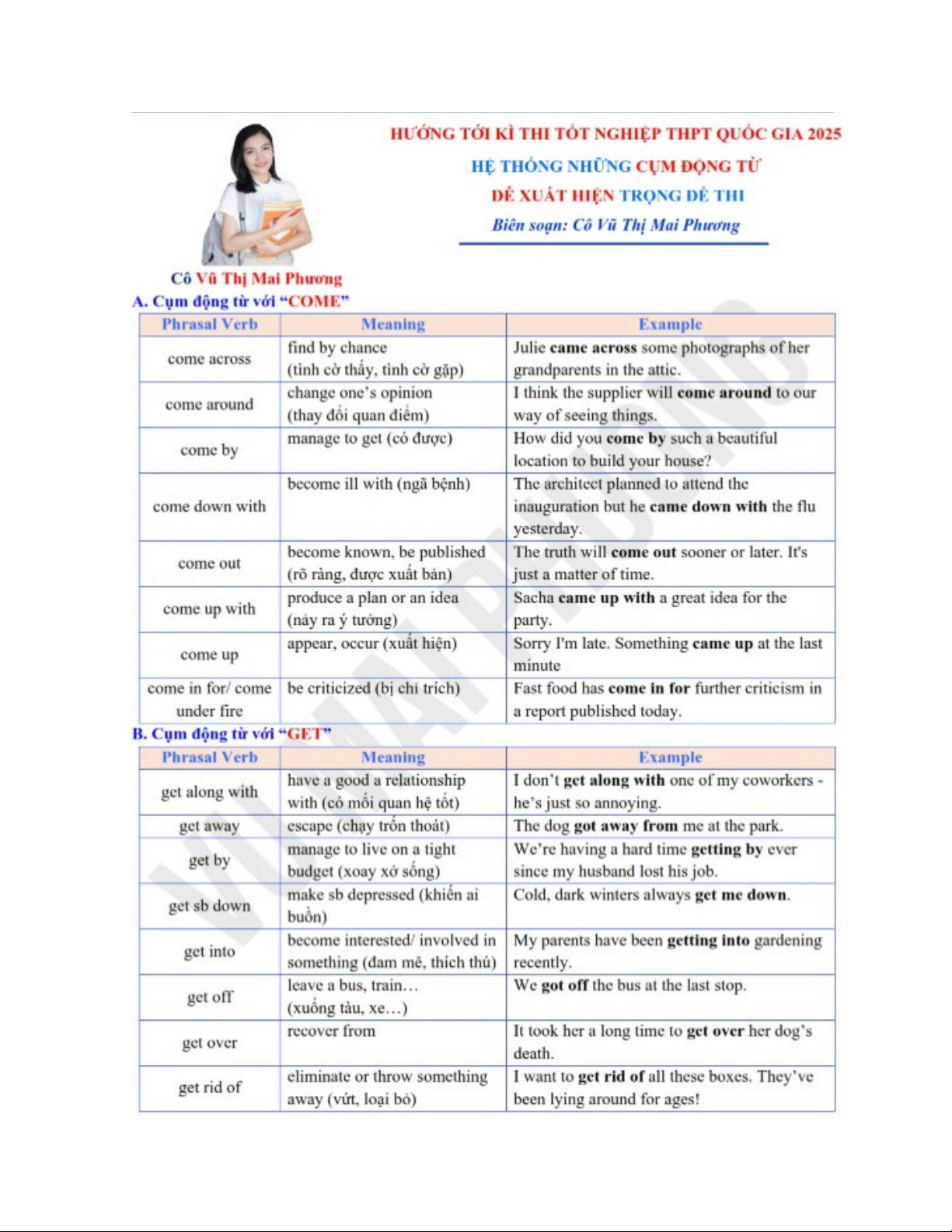 Hệ thống những cụm động từ dễ xuất hiện trong đề thi. Tài liệu được sưu tầm giúp bạn tham khảo, ôn tập và đạt kết quả cao. Mời bạn đọc đón xem.