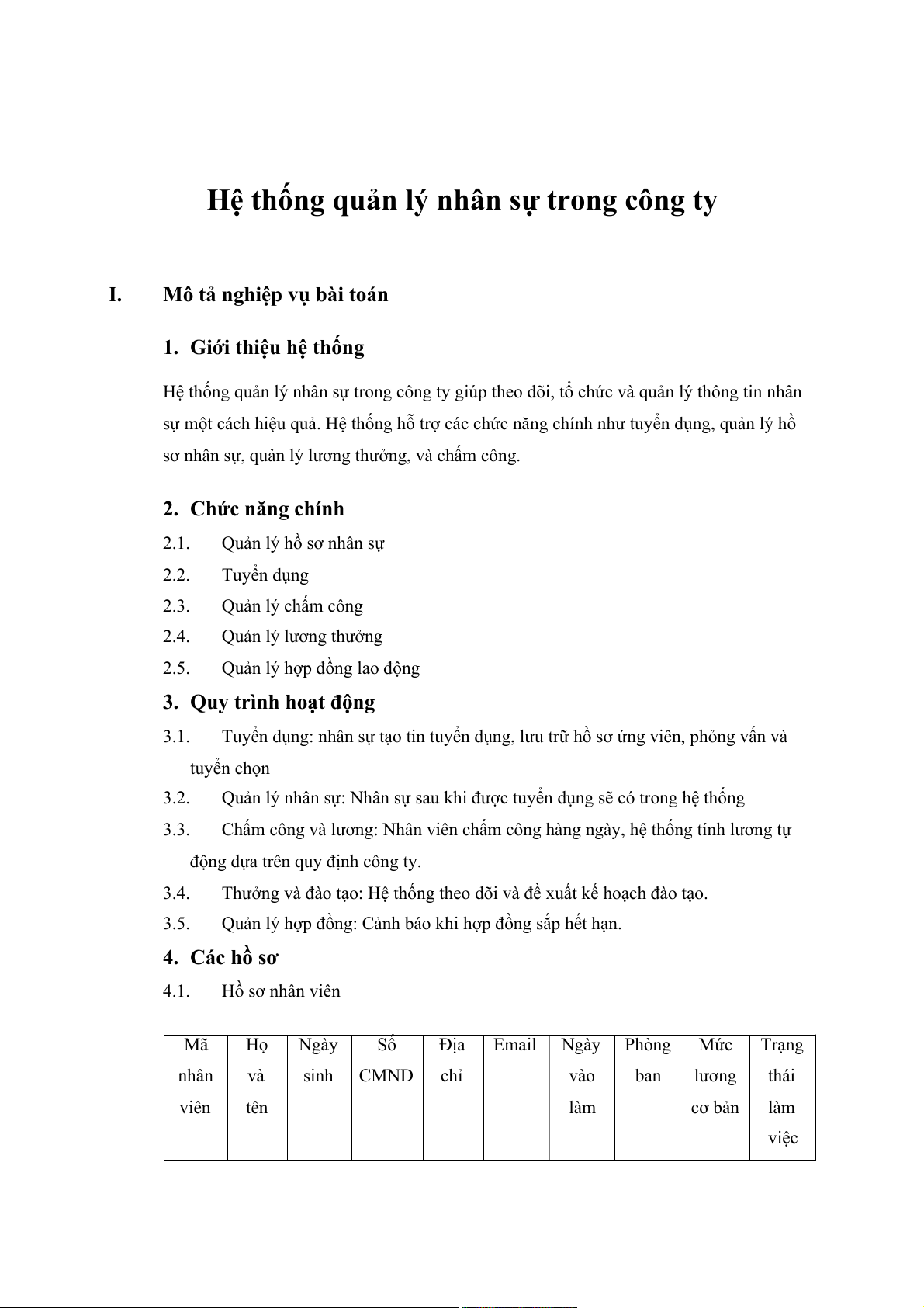 Hệ thống quản lý nhân sự trong công ty I.