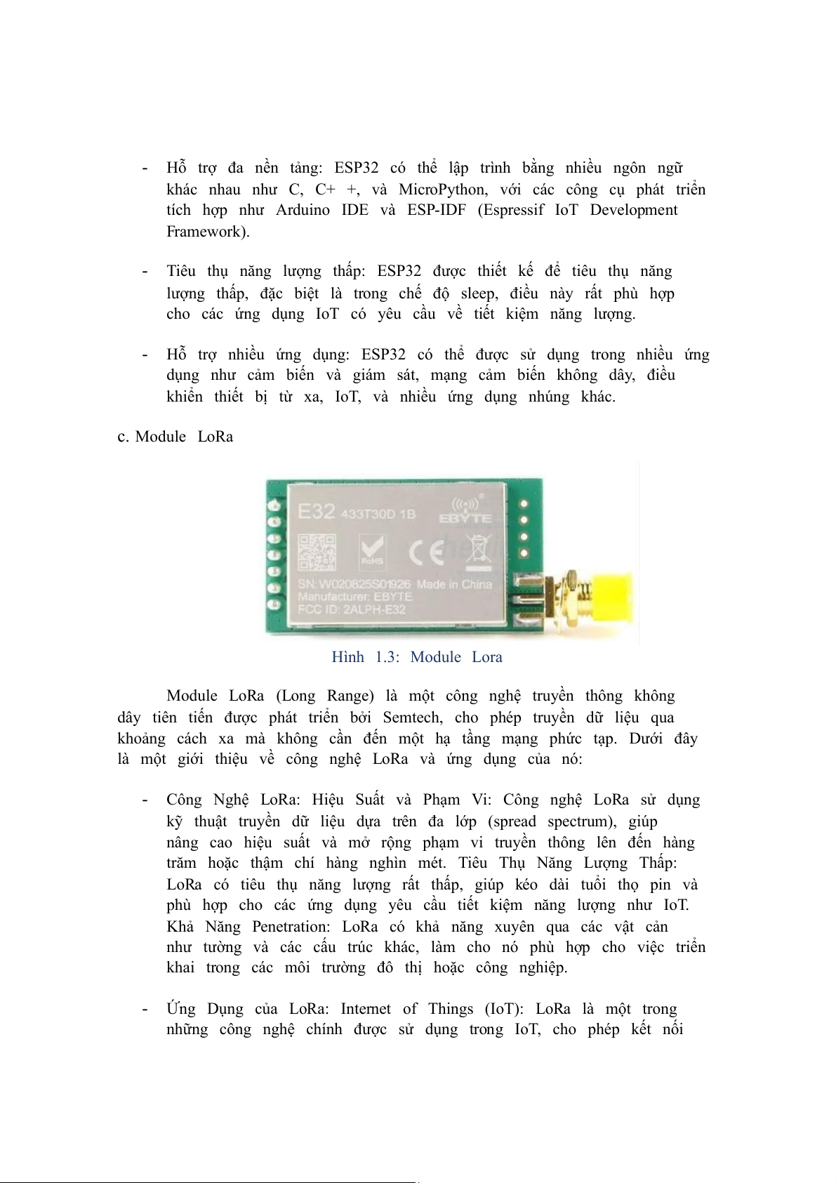 khiển thiết bị từ xa, IoT, và nhiều ứng dụng nhúng khác. c. Module LoRa