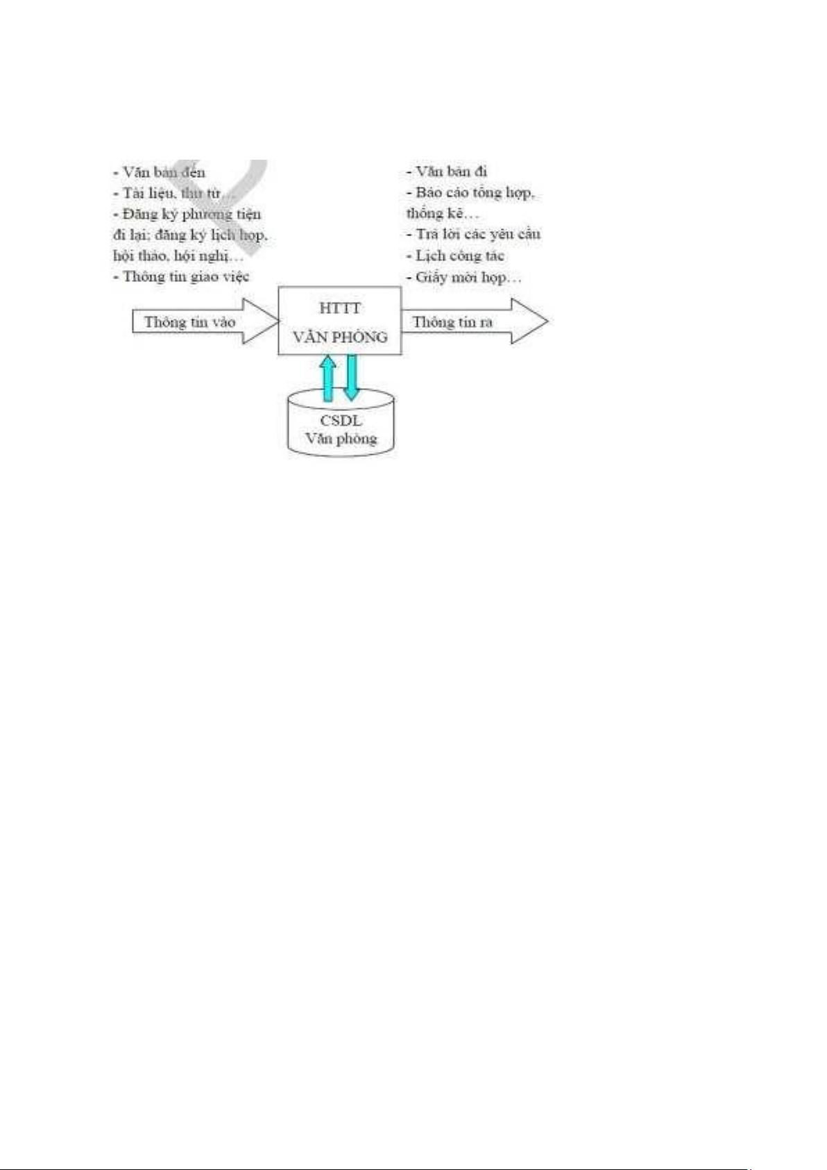 theo dõi và đánh giá hiệu quả làm việc.  Hình 4.2.  Sơ đồ  luồng dữ  liệu vào ra  của  HTTT  quản lý  văn phòng  1.2 Các  chức  năng cơ  bản