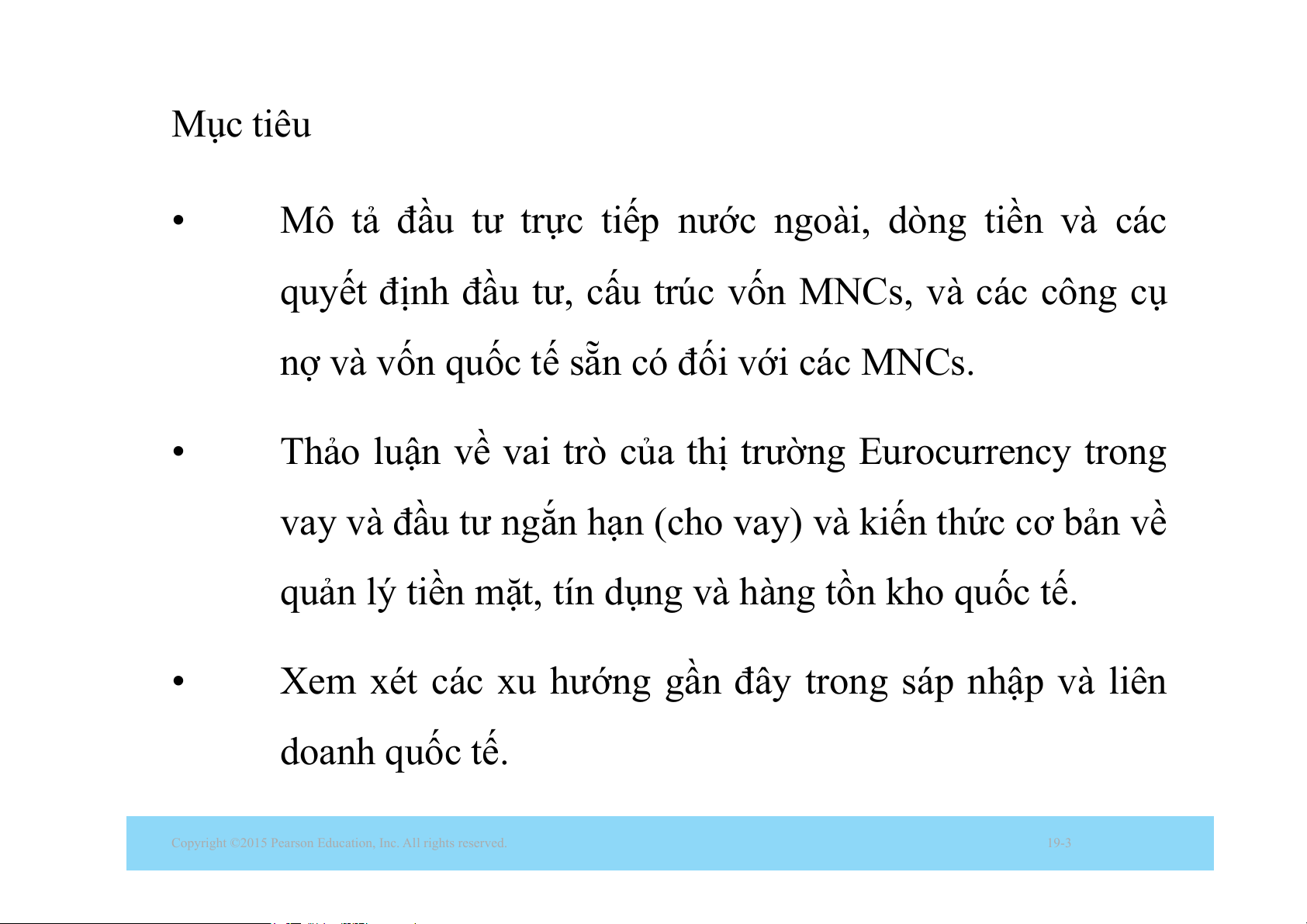 Copyright ©2015 Pearson Education, Inc. All rights reserved. 19-2 Mục tiêu •