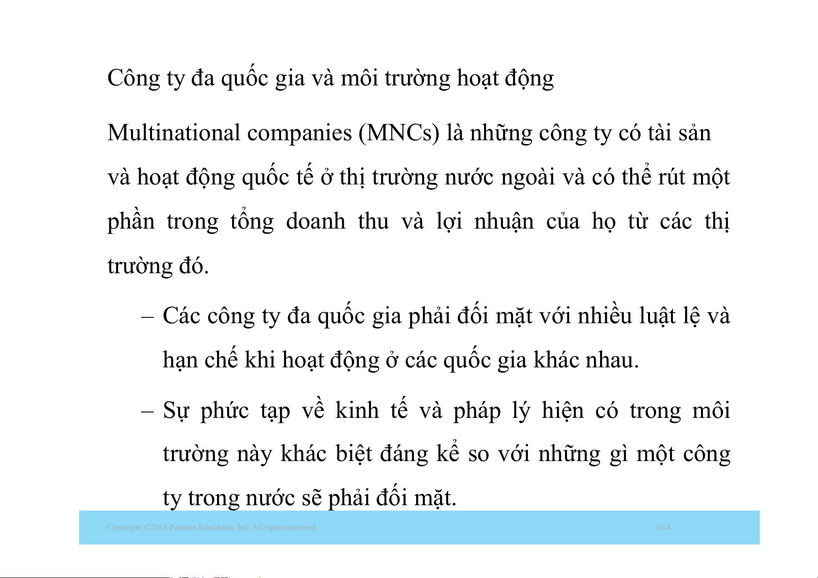 của các công ty đa quốc gia (MNC). •