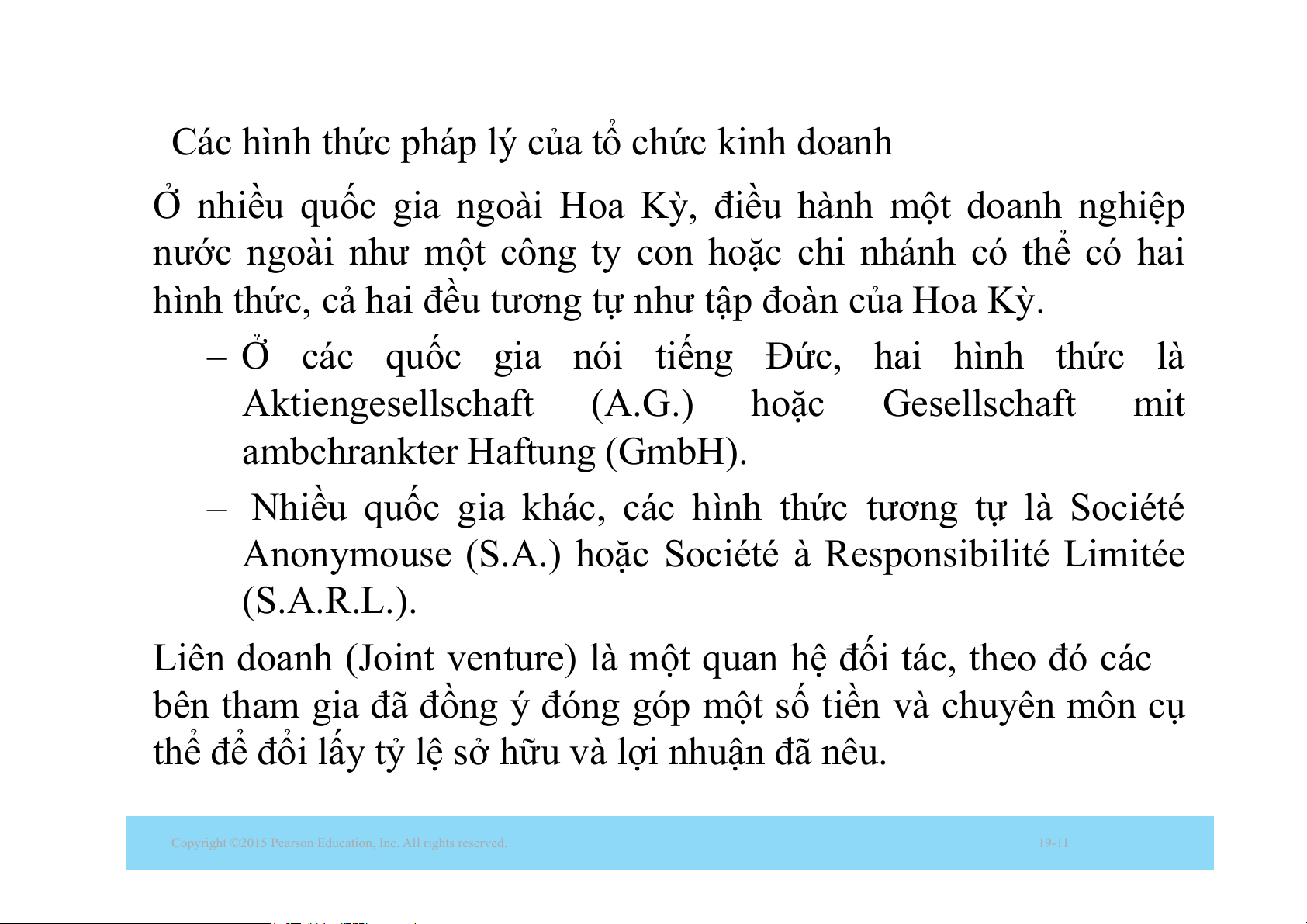 – Ở các quốc gia nói tiếng Đức, hai hình thức là Aktiengesellschaft (A.G.) hoặc Gesellschaft mit am a bchran m kt k er e Ha H ft a un ft g un (Gm (G bH m ).
