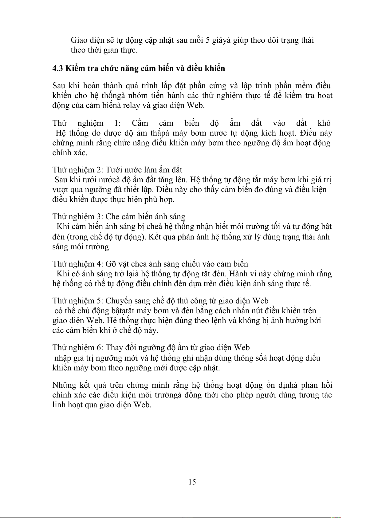 Sau một thời gian vận h,nh thử nghiệm hệ thống trên mô hình trồng cây