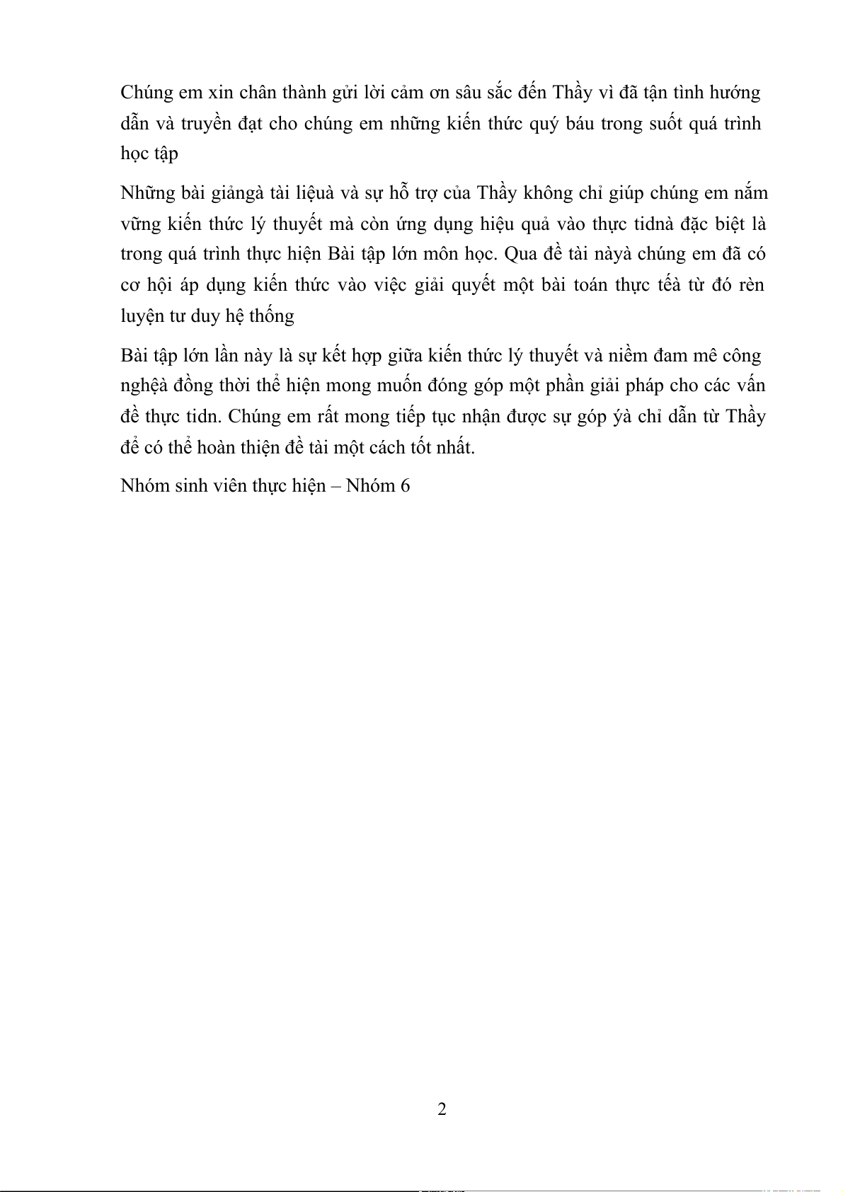 trong quá trình thực hiện B,i tập lớn môn học. Qua đ% t,i n,y, chúng em đã có