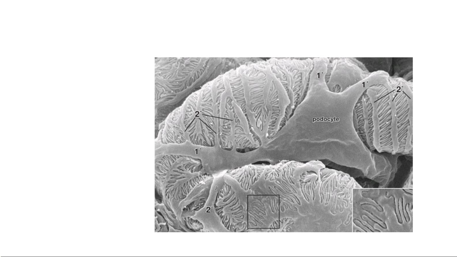 Histology_ A Text and Atlas_ With Correlated Cell an Molecular Biology • Khe lọc: khoảng cách giữa các nhánh thứ cấp # 25nm B • C Màng khe lọc: 6nm màng nối các nhánh thứ phát A F E A: tb nội mô B: tb có chân C: khe lọc D: màng khe lọc E: lổ thủng tb nội mô D F: màng đáy 23