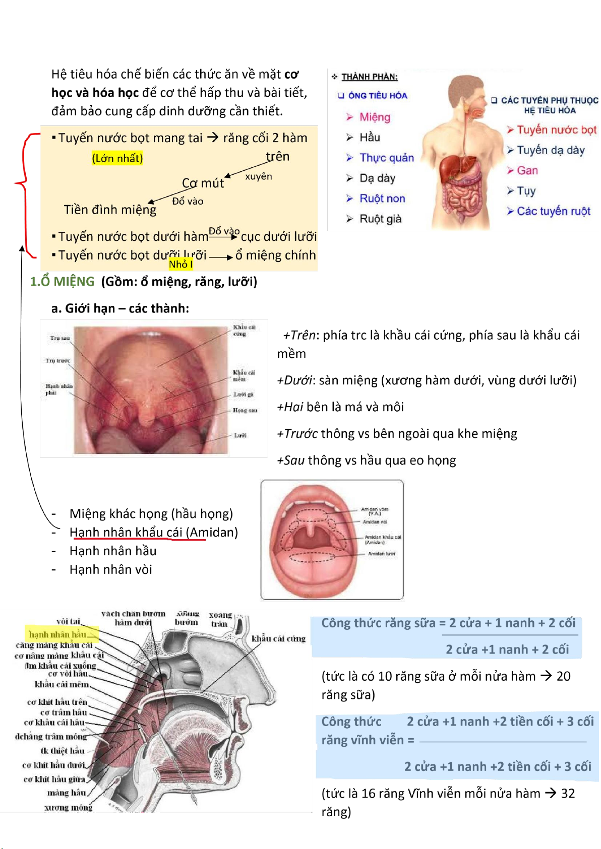 b. Ổ miệng: 2 phần (chia bởi cung răng lợi)