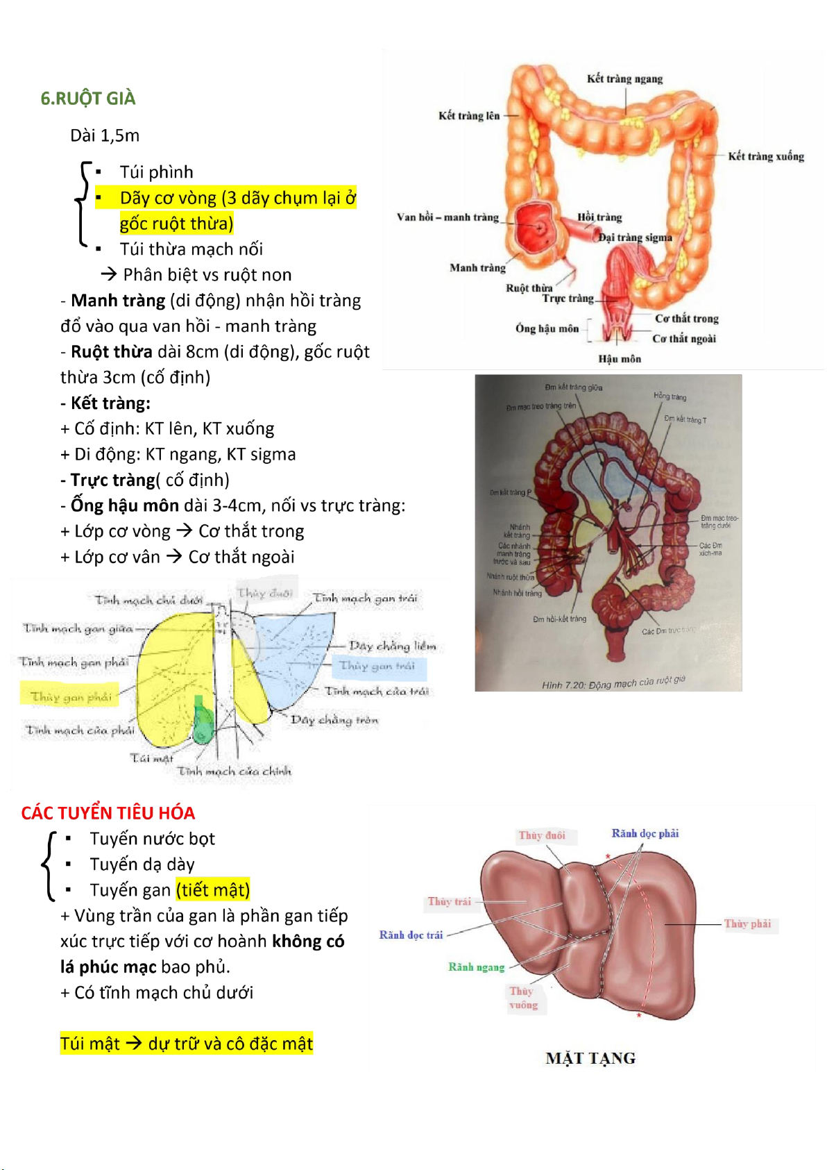Dạ dày, ruột non, ruột già (có cơ vòng, cơ dọc)