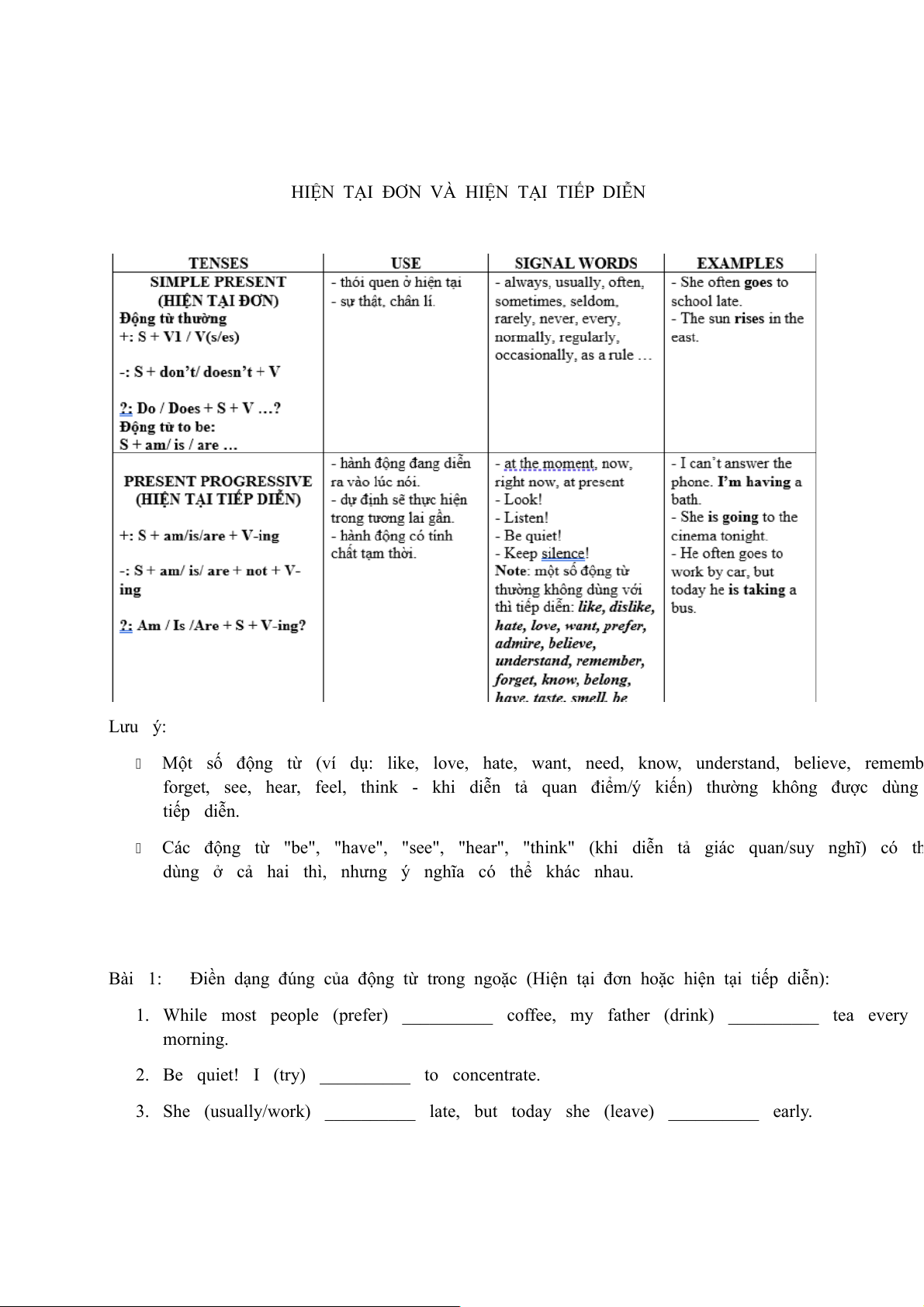 HIỆN TẠI ĐƠN VÀ HIỆN TẠI TIẾP DIỄN Lưu ý: