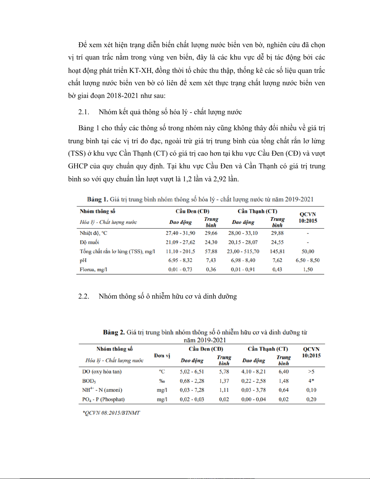 2. HIỆN TRẠNG CHẤT LƯỢNG NƯỚC BIỂN VEN BỜ THEO THỜI GIAN TỪ