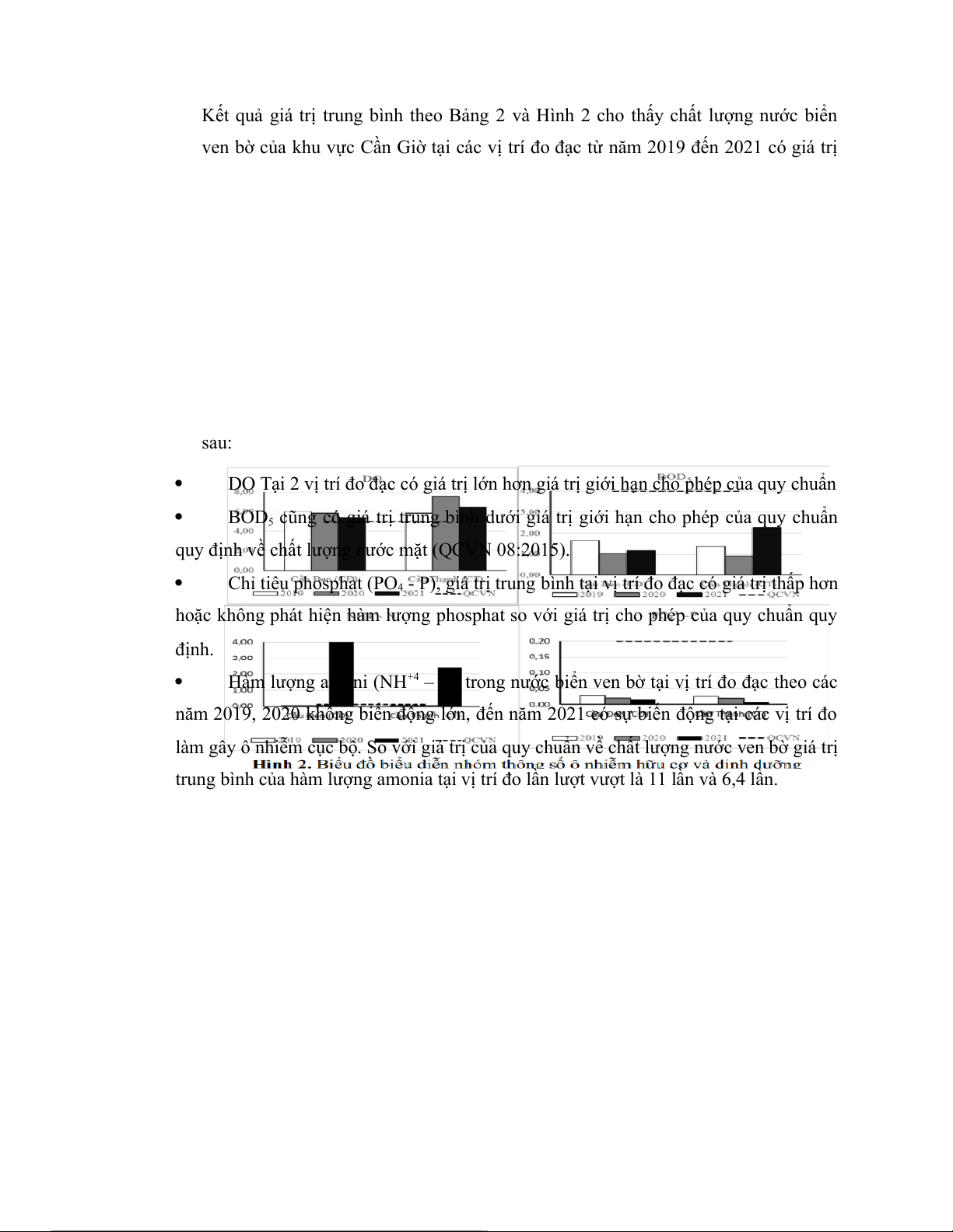 trung bình của hàm lượng amonia tại vị trí đo lần lượt vượt là 11 lần và 6,4 lần. 2.3.