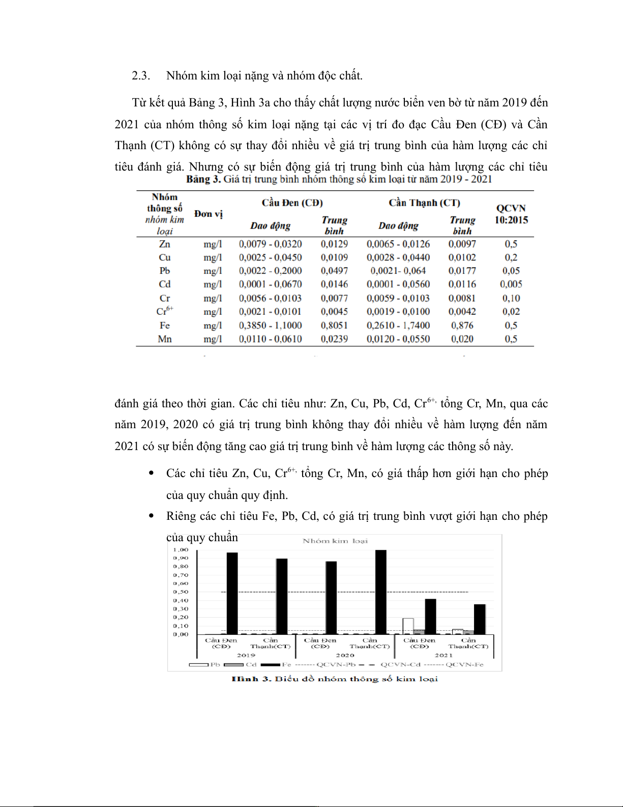 2021 của nhóm thông số kim loại nặng tại các vị trí đo đạc Cầu Đen (CĐ) và Cần