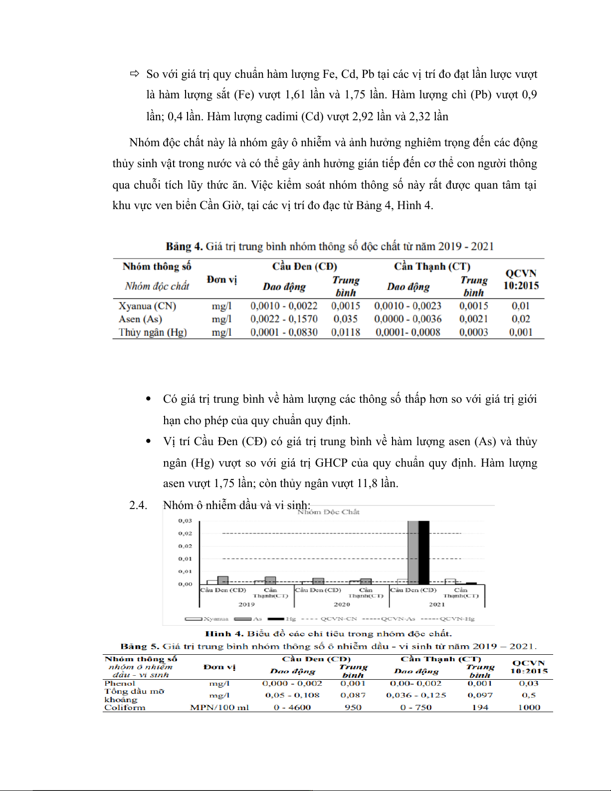 asen vượt 1,75 lần; còn thủy ngân vượt 11,8 lần. 2.4.