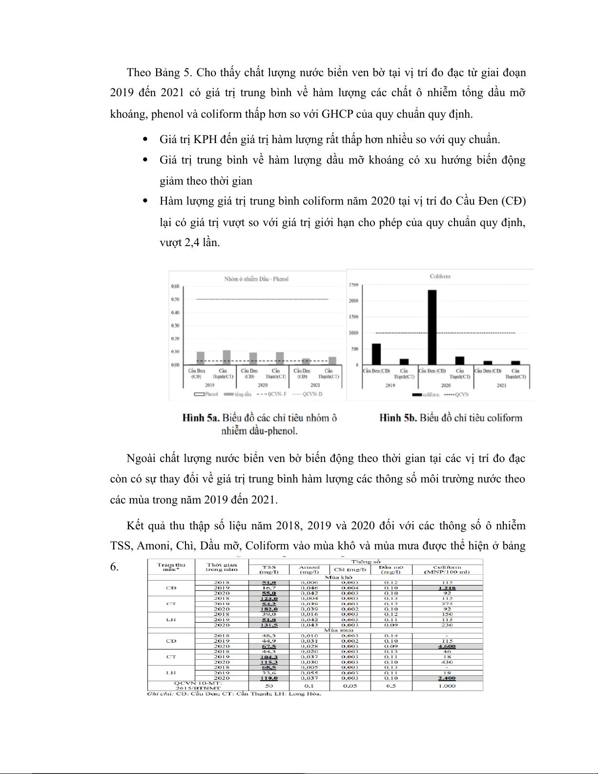 Theo Bảng 5. Cho thấy chất lượng nước biển ven bờ tại vị trí đo đạc từ giai đoạn